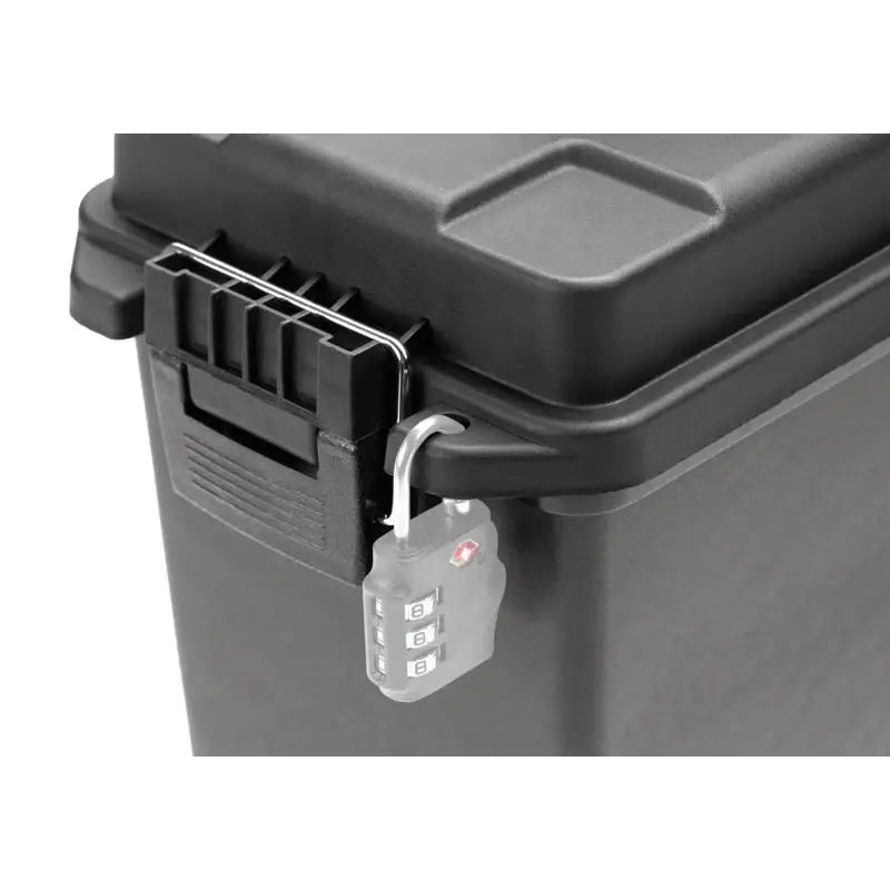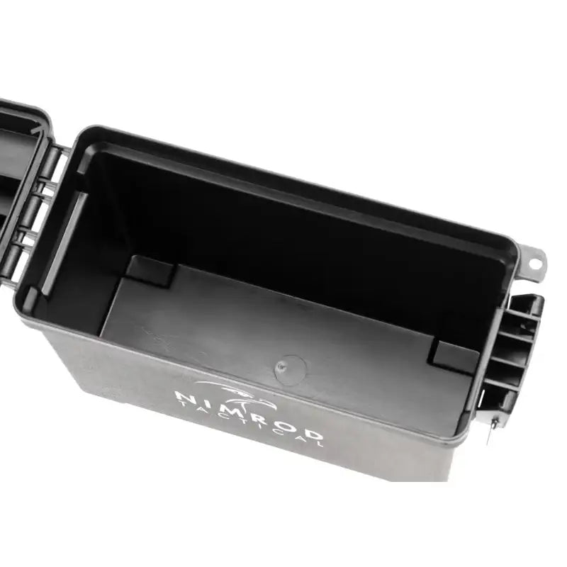 En allsidig og solid oppbevaringsboks laget for trygg lagring av ammunisjon, utstyr og annet som må beskyttes mot fukt og støv. Boksen leveres i to størrelser (medium og large) og passer utmerket både til skytebanen, garasjen og som del av et beredskapslager.