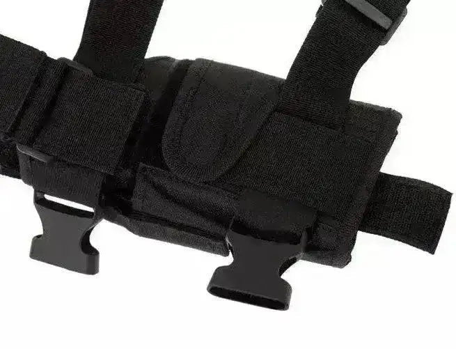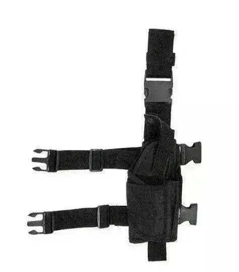 Cet étui universel pour pistolet est fabriqué en nylon et a une couleur noir mat. Il s'attache à la ceinture et à deux sangles réglables autour de la cuisse. L'étui s'adapte bien et peut être adapté à un certain nombre de pistolets car la taille est ajustée avec du Velcro, entre autres l'étui convient aux M9, Glock, 1911, USP et bien plus encore !