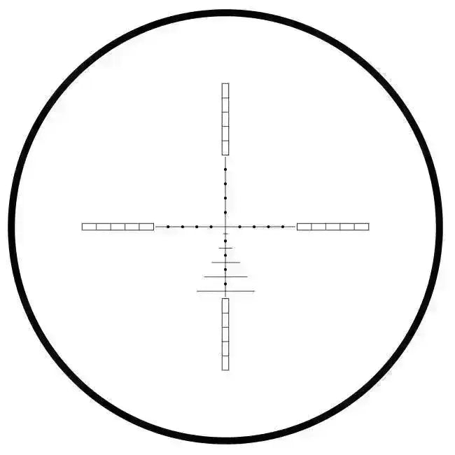 Le réticule est basé sur AMX Mil-dot et est fait de verre gravé pour résister à plus de recul. Le type de réticule est bien adapté aux carabines à air comprimé, car ces dernières ont souvent une trajectoire de balle plus courbée. (Voir photo pour le réticule)