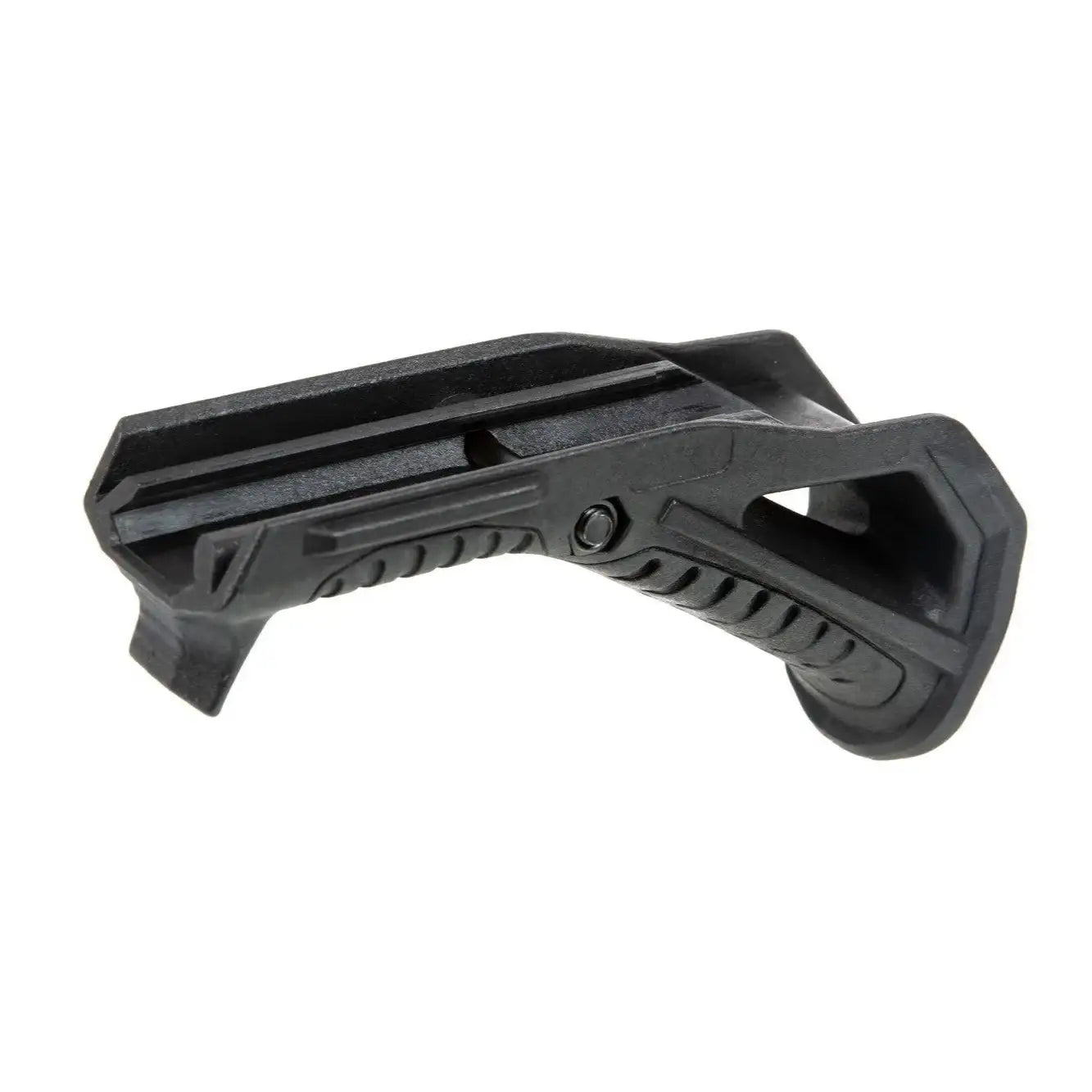 Cette poignée avant est en polymère très résistant à l'usure avec des vis métalliques. Vous montez facilement la poignée sur tous les rails de 21 mm et constitue un excellent remplacement pour les poignées avant verticales normales. Grâce à la conception de la poignée, la main obtient une prise optimale autour du fusil et le pouce repose automatiquement sur le côté de la poignée. Cela signifie que vous obtenez une arme très stable avec laquelle tirer, que vous visiez longtemps ou que vous deviez tirer rapidement sur la cible.