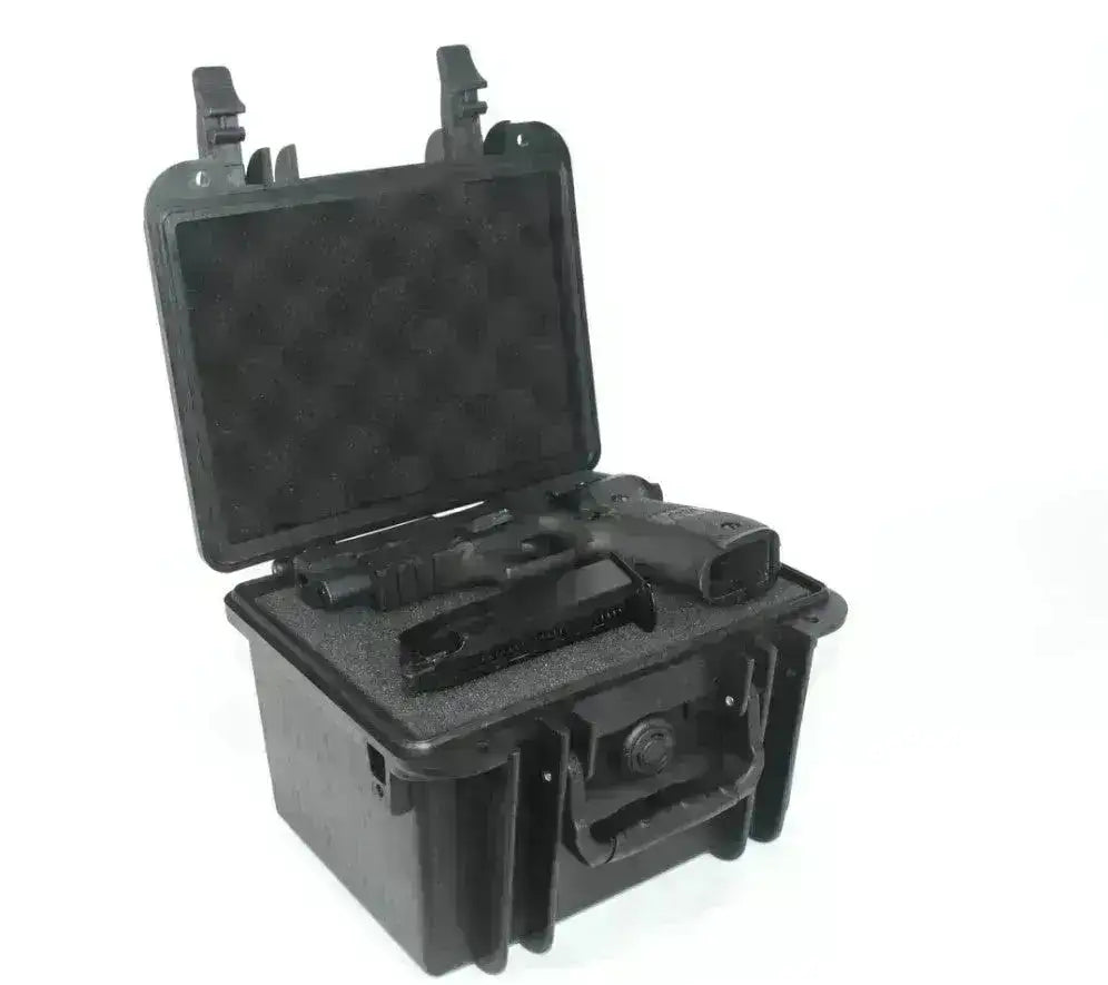 Un excellent étui pour pistolets et accessoires. Le boîtier comporte plusieurs couches de mousse qui offrent plusieurs étages où vous pouvez placer l'équipement. Le boîtier dispose également d'une valve de pression.