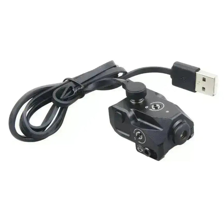 Deux interrupteurs, un pour marche/arrêt et un pour capteur intelligent. Le laser est livré avec un chargeur USB et dispose d'une batterie rechargeable.