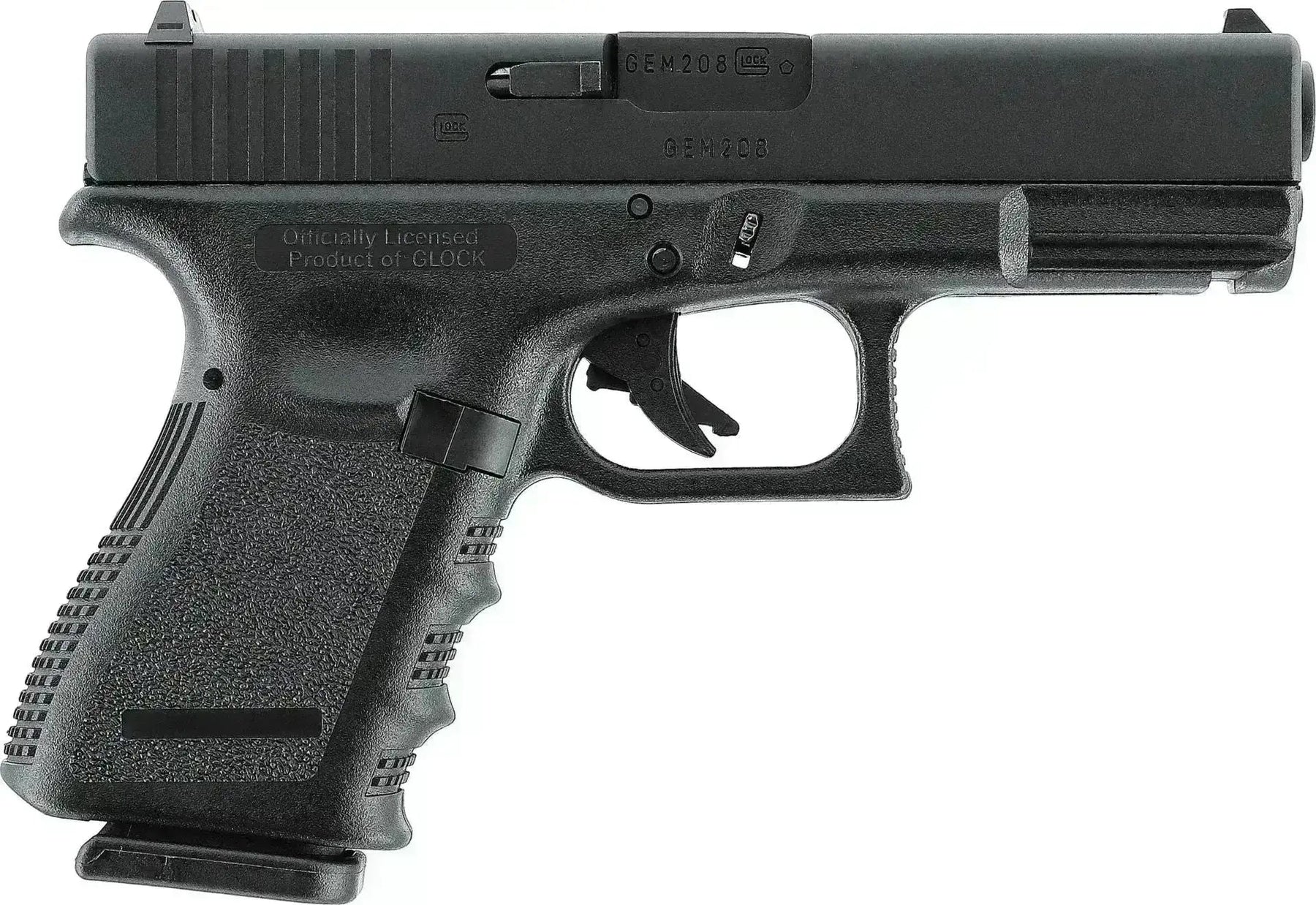 Un pistolet souple Glock compact complètement identique à la version originale. Le pistolet a une glissière entièrement en métal avec un cadre en polymère, comme l'original.