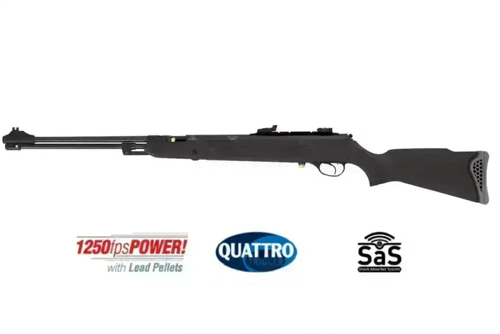 Idéal pour garder au chalet et parfait pour le tir à la cible dans le jardin, le fusil a une précision encore meilleure car le canon est stationnaire et ne se casse pas comme le font les autres fusils démontables. Hatsan Torpedo 150 offre une vitesse initiale de 1 250 pieds par seconde et le fusil est équipé de viseurs en fibre optique qui peuvent être ajustés - le fusil est donc facile à viser, puissant et très précis, non seulement cela, il est également très bon marché à utiliser car vous n'avez besoin que de plombs.
