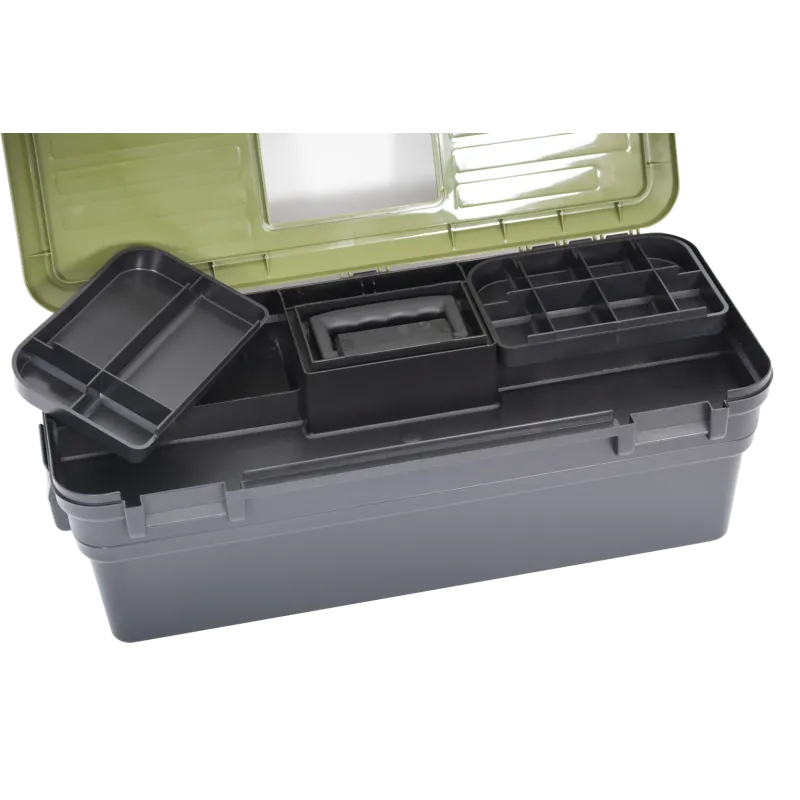 - Øvre rom: Designet for oppbevaring av reservedeler, oljer og silikon. To avtakbare sidebokser for smådeler som skruer og tilbehør under demontering.