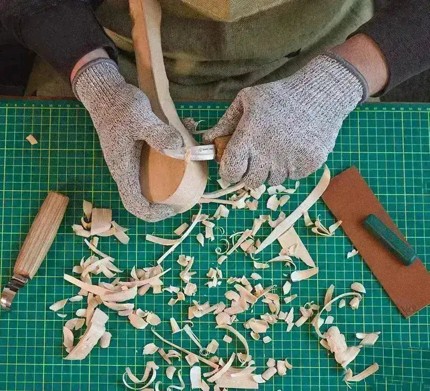 - Ponçage du cuir avec une cire à polir qui permet de garder vos lames de couteaux aiguisées et belles.