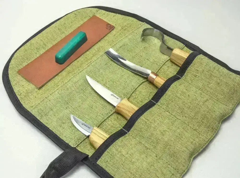 L'ensemble comprend trois outils de précision : un couteau à gouger, un couteau à entailler universel et un couteau de détail, tous fabriqués avec des lames en acier au carbone tranchantes comme des rasoirs et des manches en bois confortables. Tout est rangé en toute sécurité dans une mallette à roulettes robuste en cuir véritable, prête à être utilisée à la maison, à l'atelier ou en déplacement.