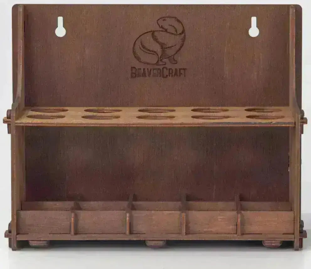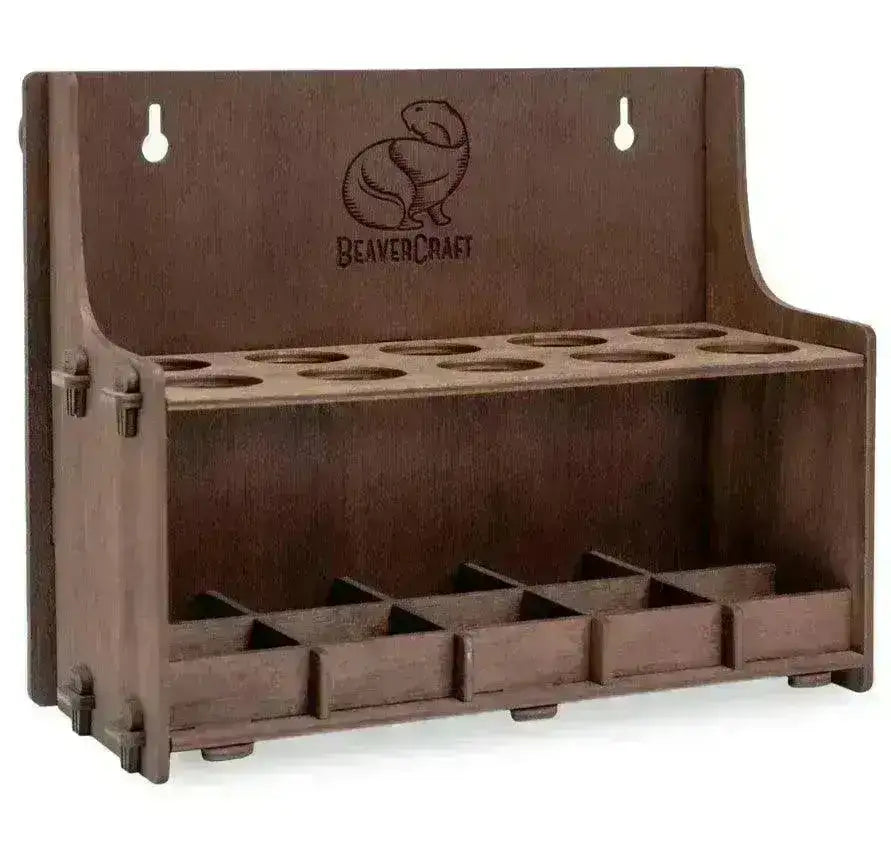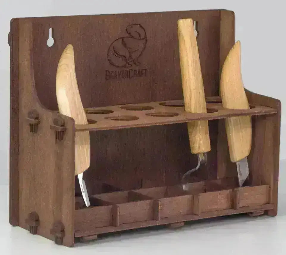 Un excellent support à outils pour couteaux et autres. Parfait pour accrocher au mur ou poser sur l'établi. Superbe finition sombre.