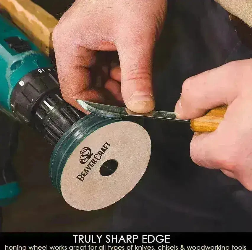 Laissez le foreur faire tourner la roue en cuir et utilisez pâte à polir, alors commencez simplement à affûter vos couteaux rapidement et facilement ! Avec un entretien approprié, les couteaux dureront toute une vie.