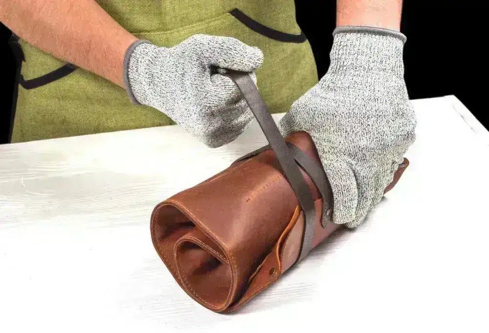 Espace pour 8 couteaux et autres petits outils. Enroulez-le et emportez-le avec vous ou placez-le sur une étagère. L'équipement est bien protégé.