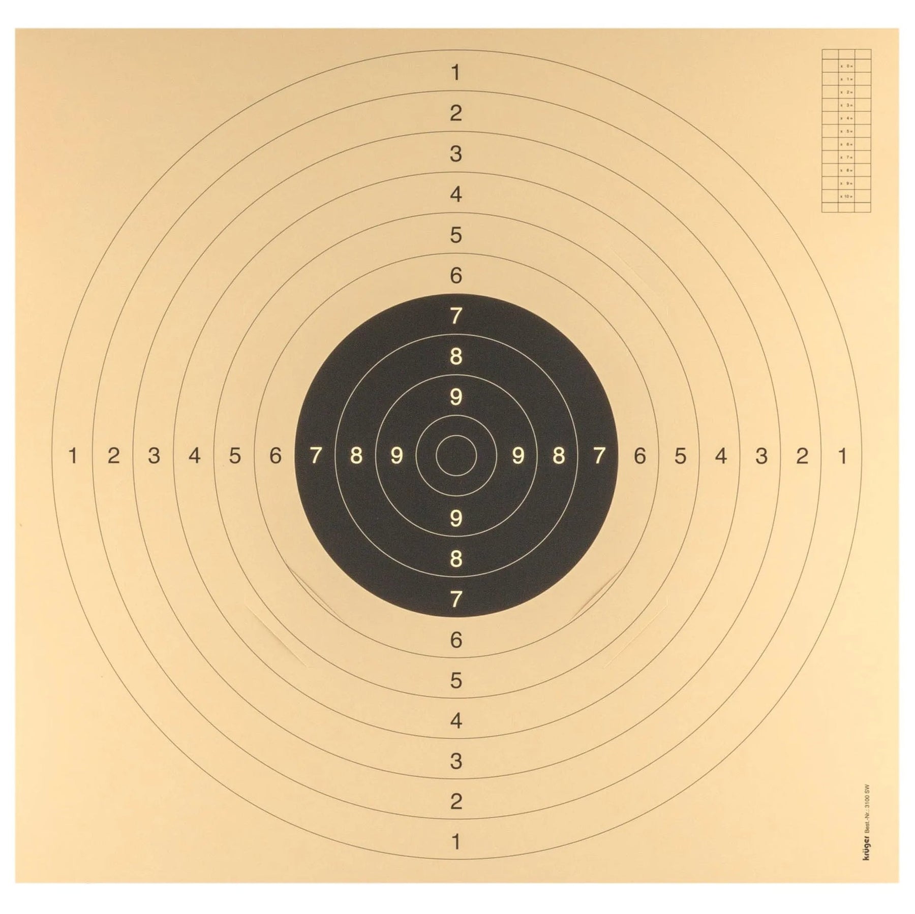 Cibles standards ITU pour le tir au pistolet à 25 et 50 mètres. Les cibles ont un fond beige et sont homologuées pour les compétitions par la FFT et l'ISSF. Les encoches prédécoupées permettent de placer facilement les centres de cibles à 21x21 cm ou 24x24 cm.