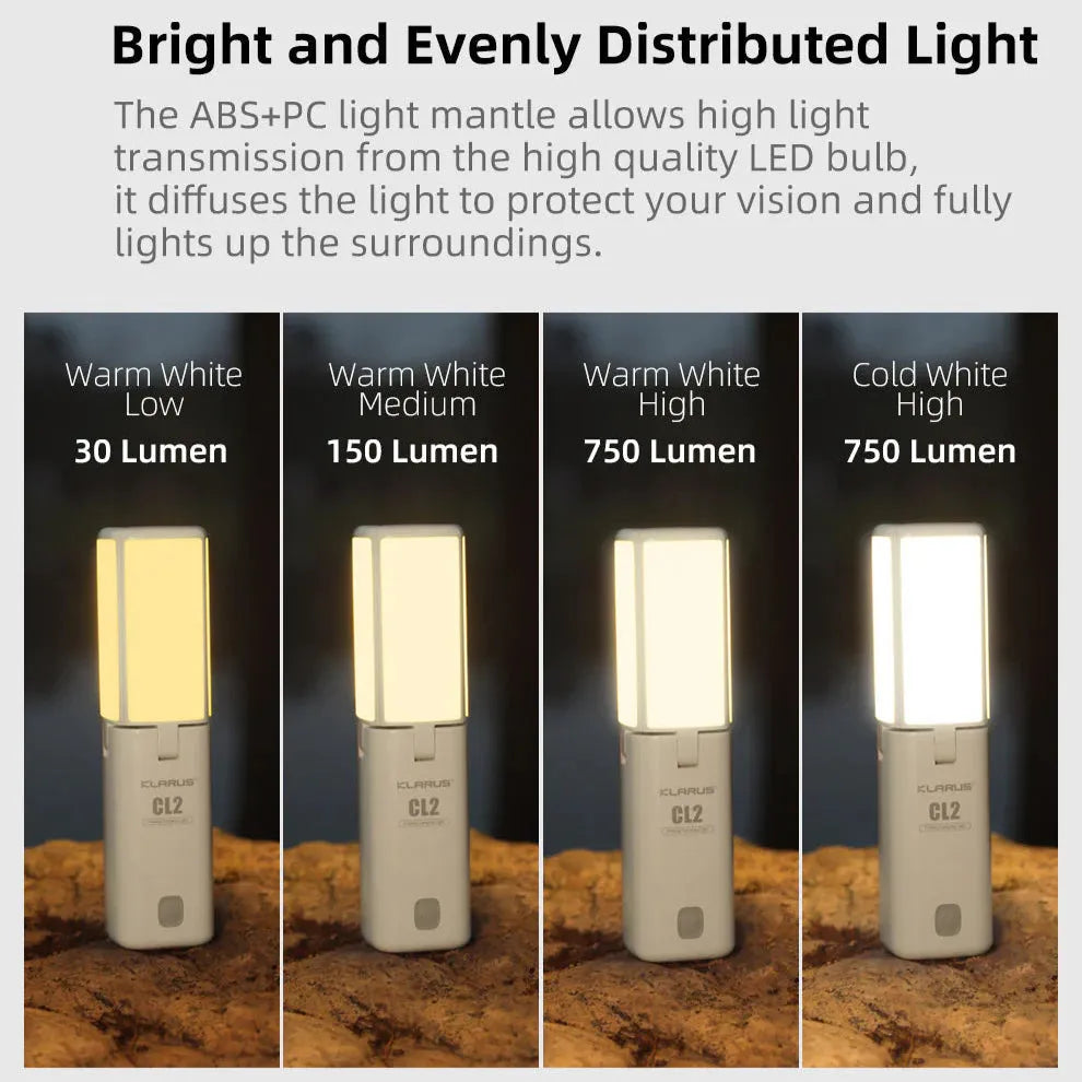 Gjør campingturen lysere med Klarus CL2 – en robust, oppladbar campinglykt som gir hele 750 lumen og 360° belysning. Med et innebygd 10400mAh batteri har du lys i opptil 60 timer og en nødlader for mobil eller GPS. Perfekt til tur, strømbrudd og friluftsbruk.