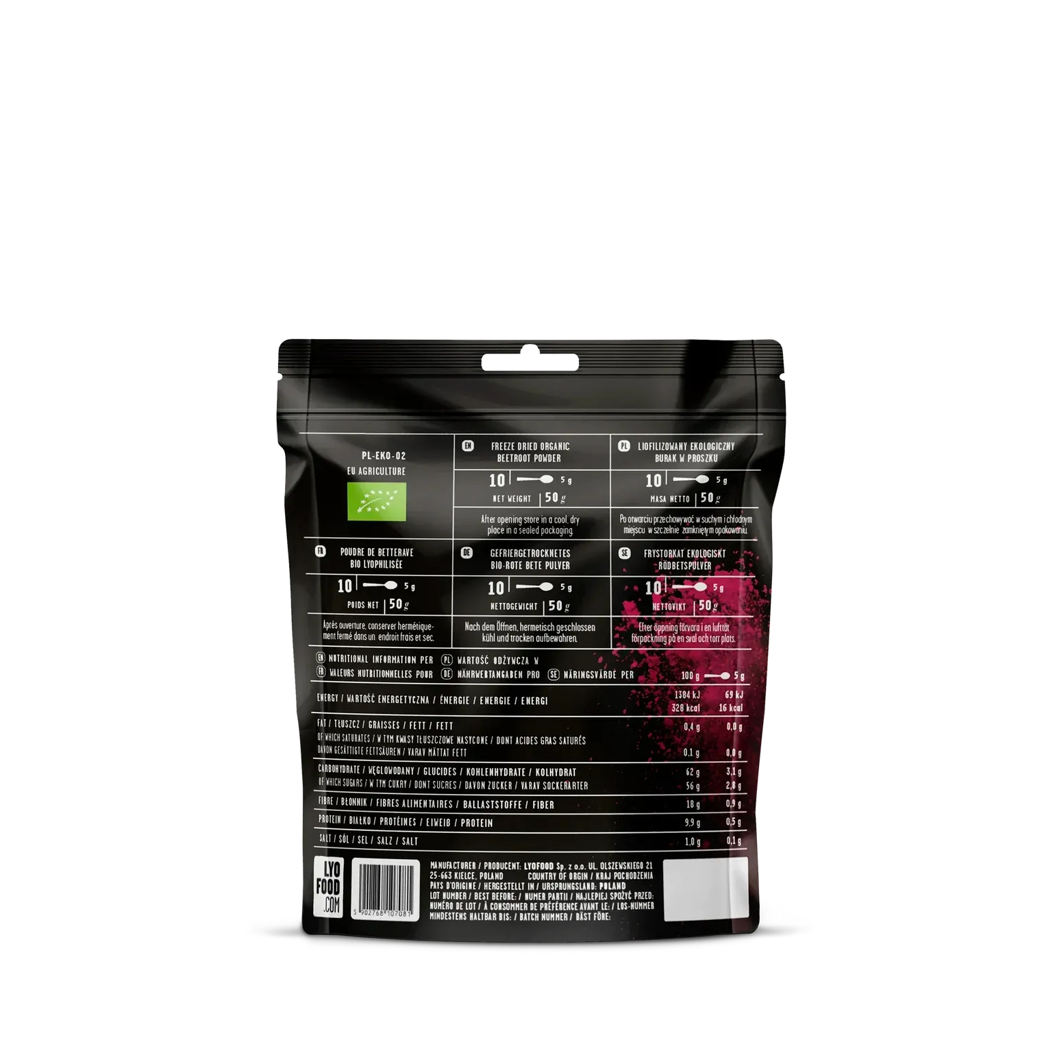 LYOFOOD Beetroot Powder er laget av ferske, økologiske rødbeter som er skånsomt tørket og malt til et næringsrikt pulver. Rødbetpulver er en naturlig kilde til fiber, jern og antioksidanter, perfekt for smoothies, grøt, drikker eller baking. 100 % naturlig og uten tilsetningsstoffer.