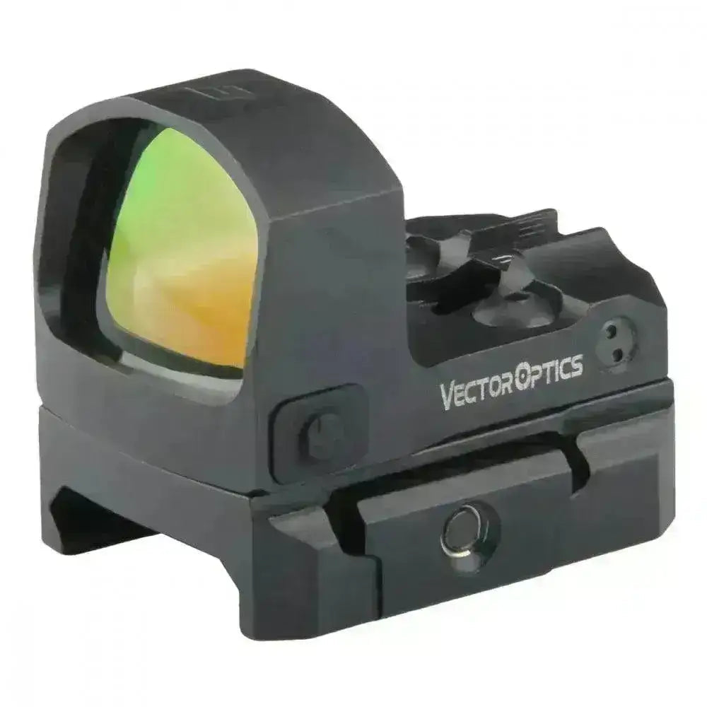 Verdens letteste full-metalls rødpunktiskte. Denne lille rakkeren er parallaxfri som vil si at du treffer der prikken viser selv om du ikke ser bent gjennom siktet.