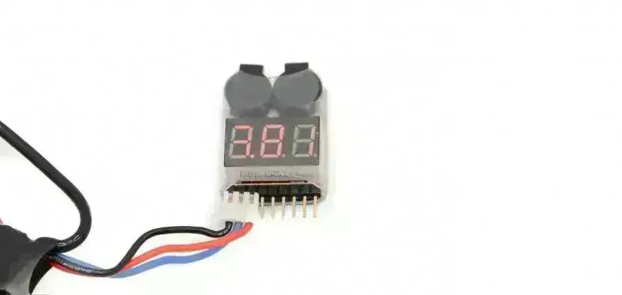 Il vous suffit de le brancher sur le port d'équilibre de votre batterie LiPO, puis il génère des informations. Il vous indique d’abord la tension totale de la batterie, puis la tension par cellule. Lorsque la tension est inférieure à 3,3 V par cellule, les phares de la voiture commencent à clignoter et une alarme commence à sonner !
