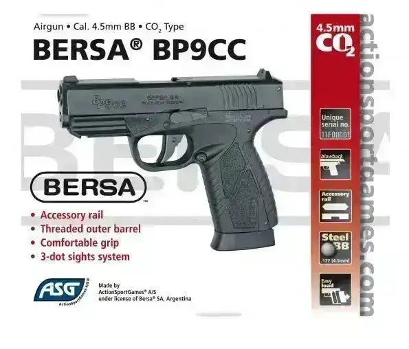 Le BP99CC est un pistolet Airsoft BB semi-automatique de 6 mm AVEC Blowback entièrement sous licence BERSA. C'est un pistolet léger, compact, ultra-mince, avec un design ergonomique qui vous offre une très bonne ligne de vue. Il est alimenté par une cartouche de Co2 de 12 g située dans la poignée, qui peut être rapidement remplacée grâce au système « easy-load ». Les balles BB sont placées dans le chargeur à bâton qui peut être facilement inséré et retiré. du pistolet. Le pistolet est également équipé d'un rail de 21 mm sous le canon, où vous pouvez fixer lanterne ou laser.