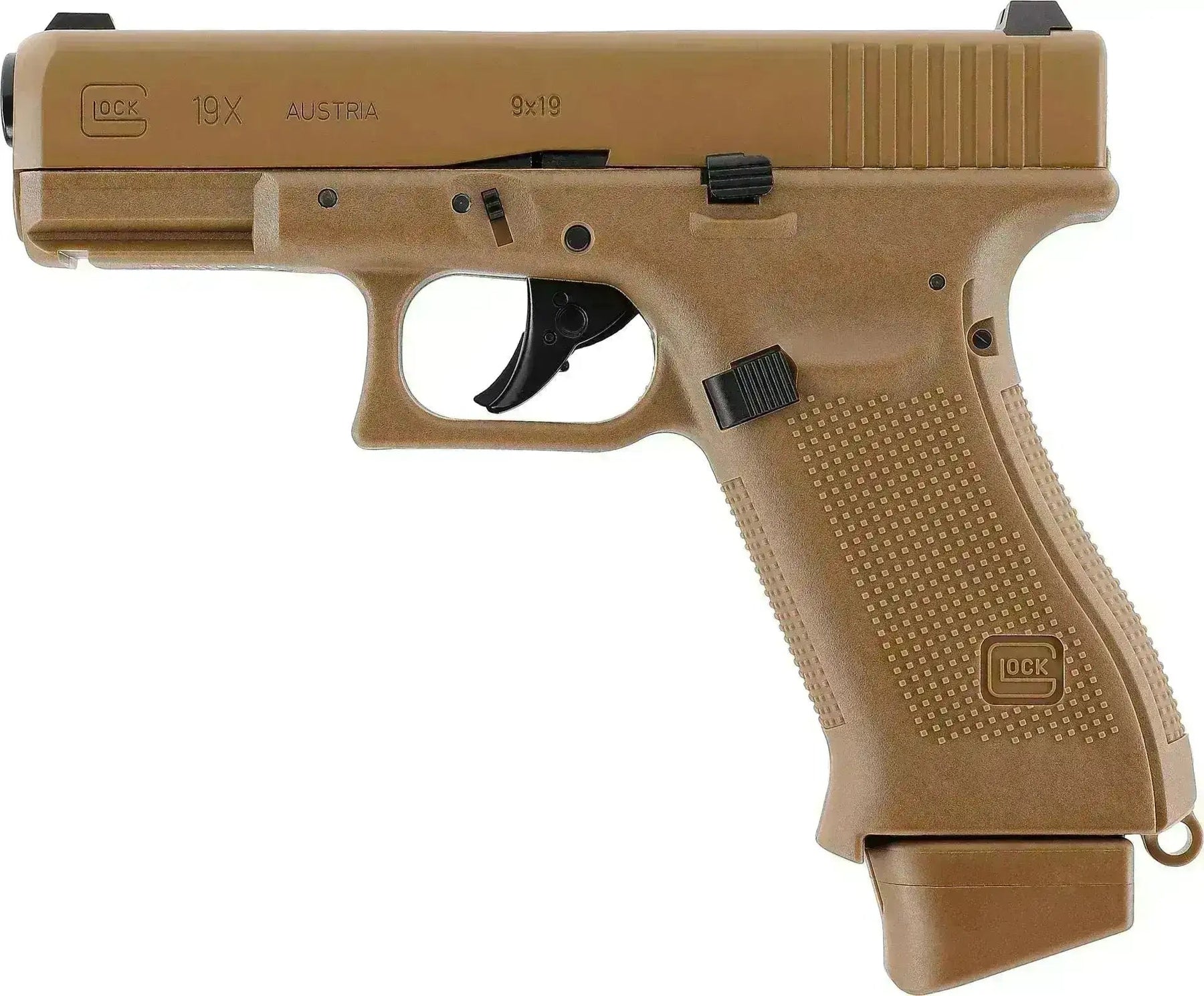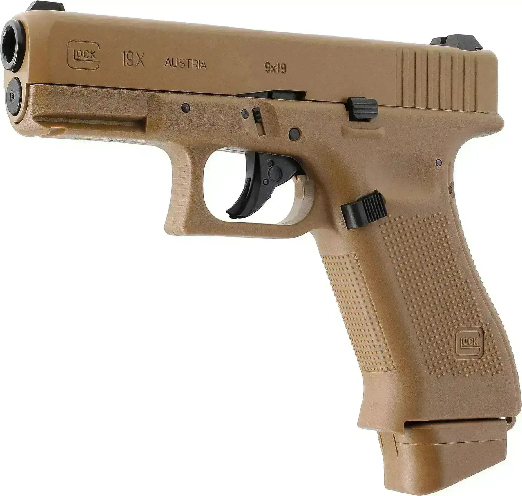 Glock décrit le modèle G19X comme son premier « pistolet crossover ». Le modèle combine le cadre pleine grandeur du Glock 17 avec la glissière compacte du Glock 19. La finition Coyote Tan distingue le pistolet des autres Glocks.