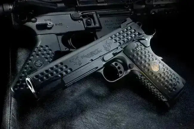 Réplique élégante du fusil souple 1911 avec blowback. C'est le pistolet pour ceux d'entre vous qui aiment le pistolet Colt classique mais qui veulent une sensation plus tactique - La couleur noir mat avec le motif « balle de golf » dans la glissière et la poignée le fait ressortir et offre une bonne adhérence à la fois autour de la glissière et de la poignée du pistolet.