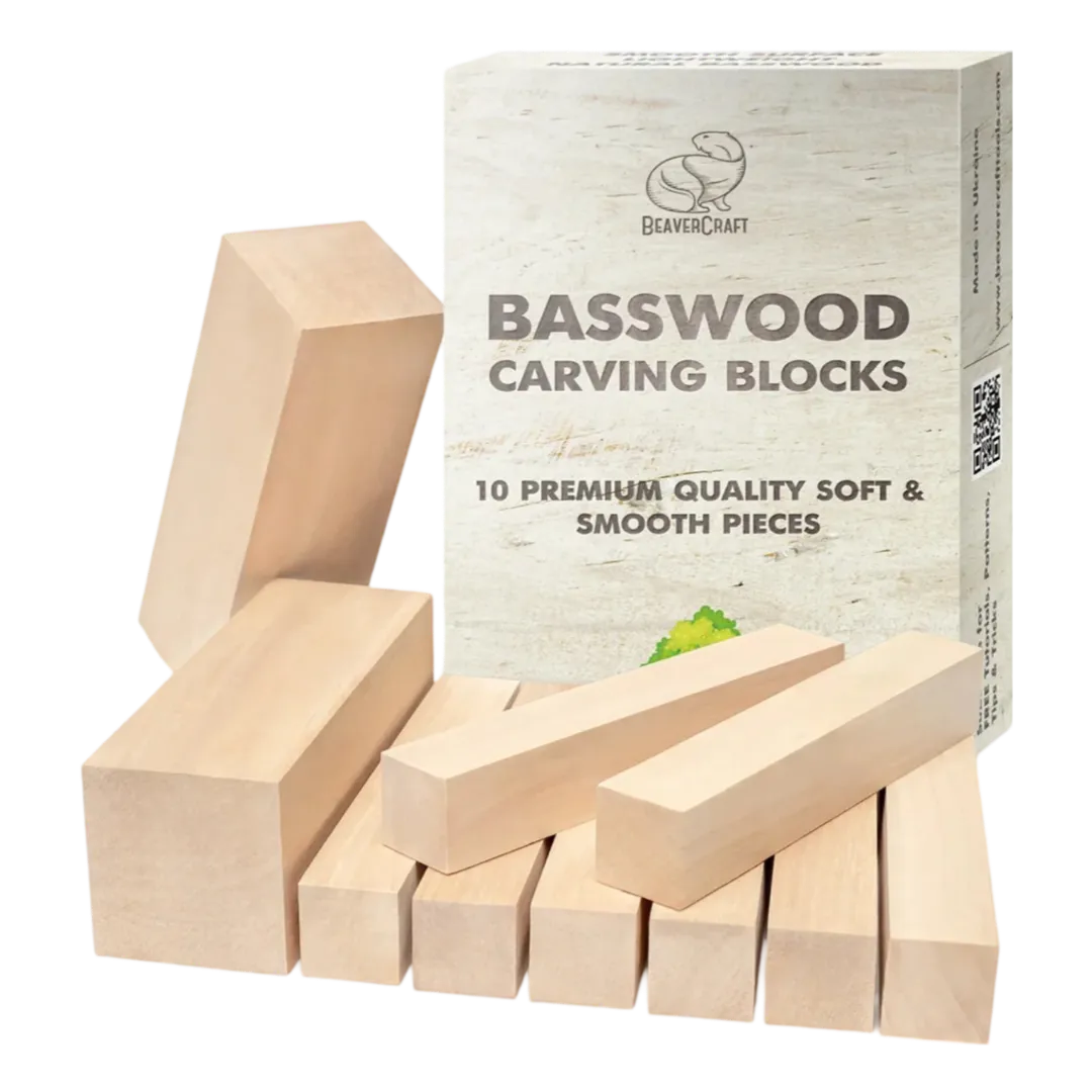 10stk treklosser fra Beaver Craft til treskjæring, klossene er av tresorten Lind.