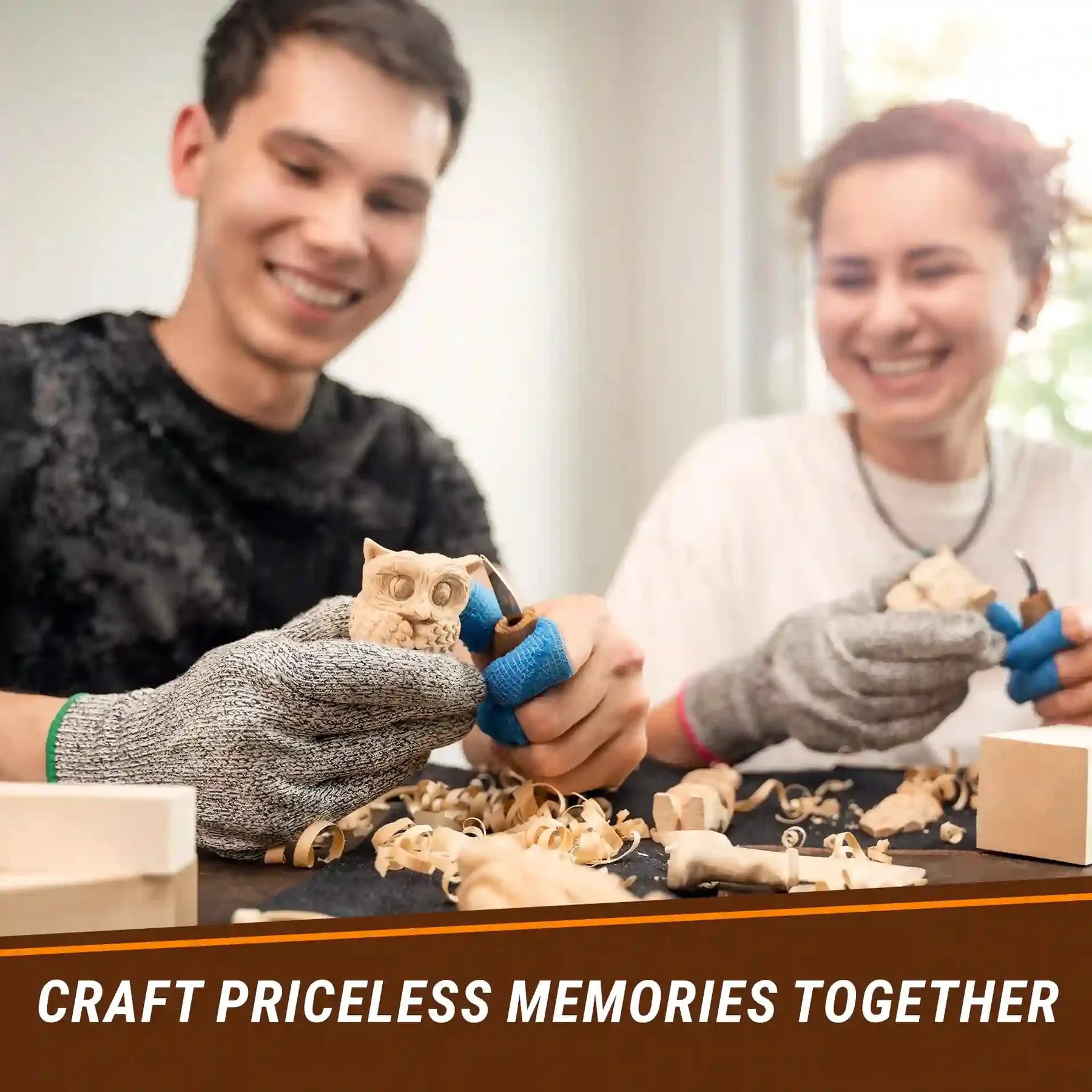 Du får totalt 10stk tre-emner til treskjæring og spikking i dette settet.