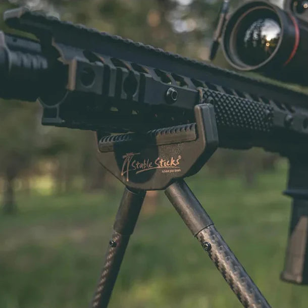 Ekstrem stabilitet, minimal vekt: 4Stable Sticks Essential Carbon tilbyr den samme solide støtten som standardmodellen, men med karbonfiber og aluminium som gjør stokken merkbart lettere (ca. 822 g). Perfekt for deg som ønsker presisjon og mobilitet — enten du er på postjakt, feltskyting eller trenger et lett støttepunkt for kikkerten.