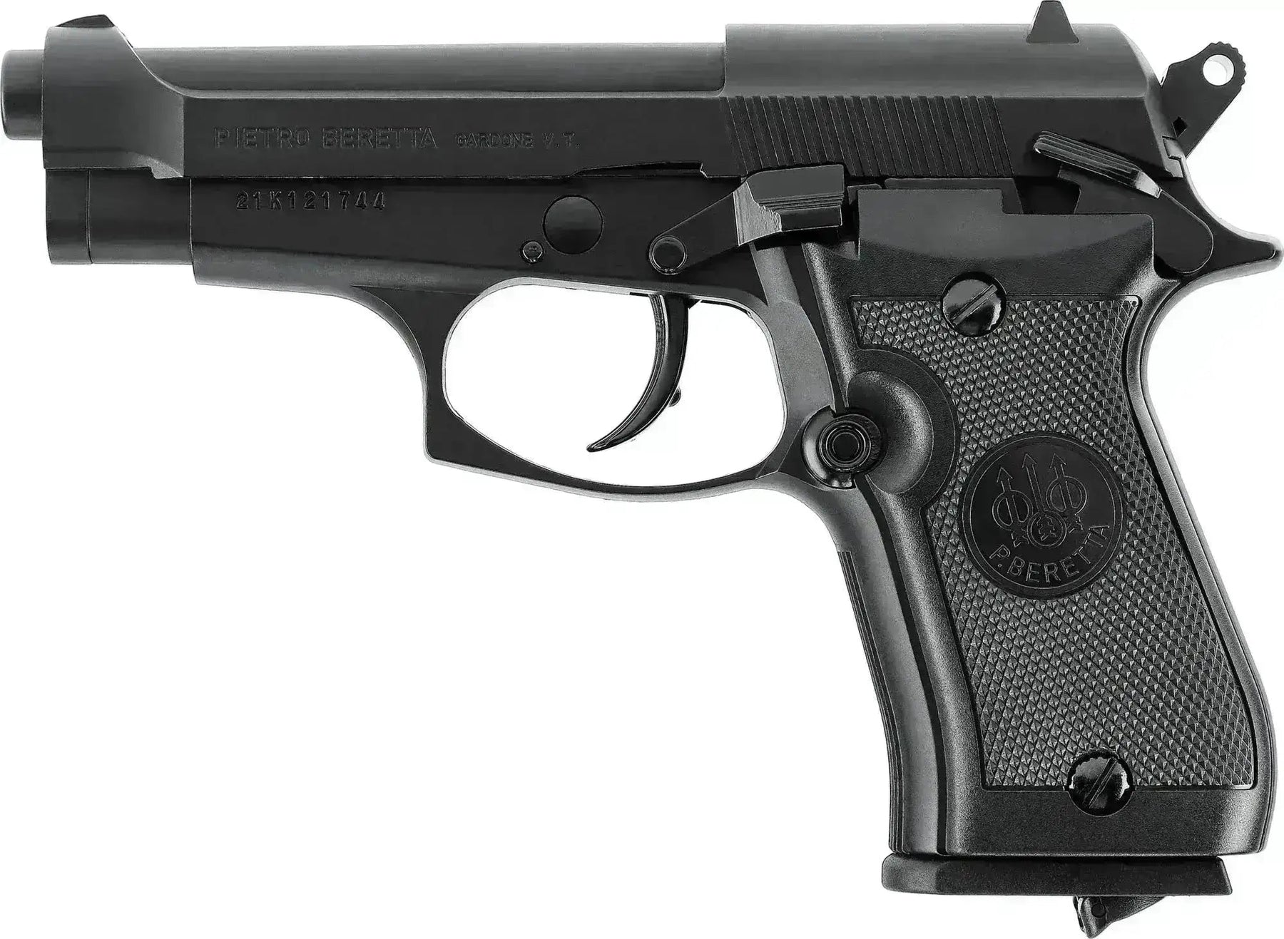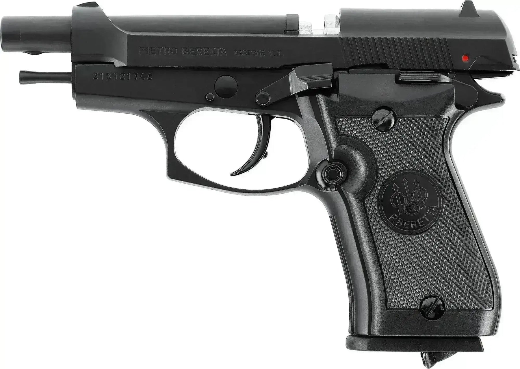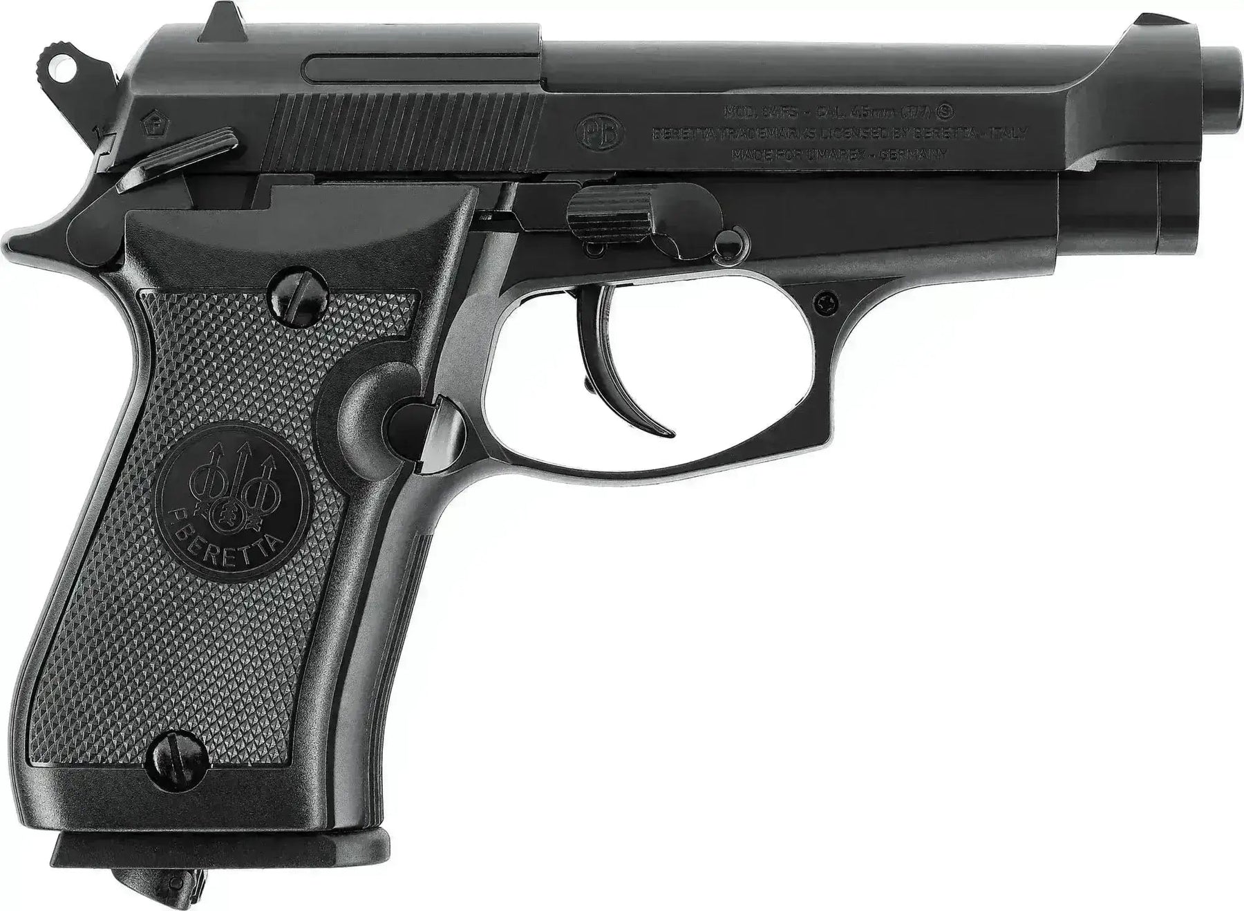 Avec cette réplique sous licence d'un Beretta M84FS, vous êtes sur la bonne voie pour passer des moments amusants avec le flash ! Il tient parfaitement dans la main et est bien équilibré avec un bon poids d'environ 650g. Le pistolet a une glissière et un corps en métal.