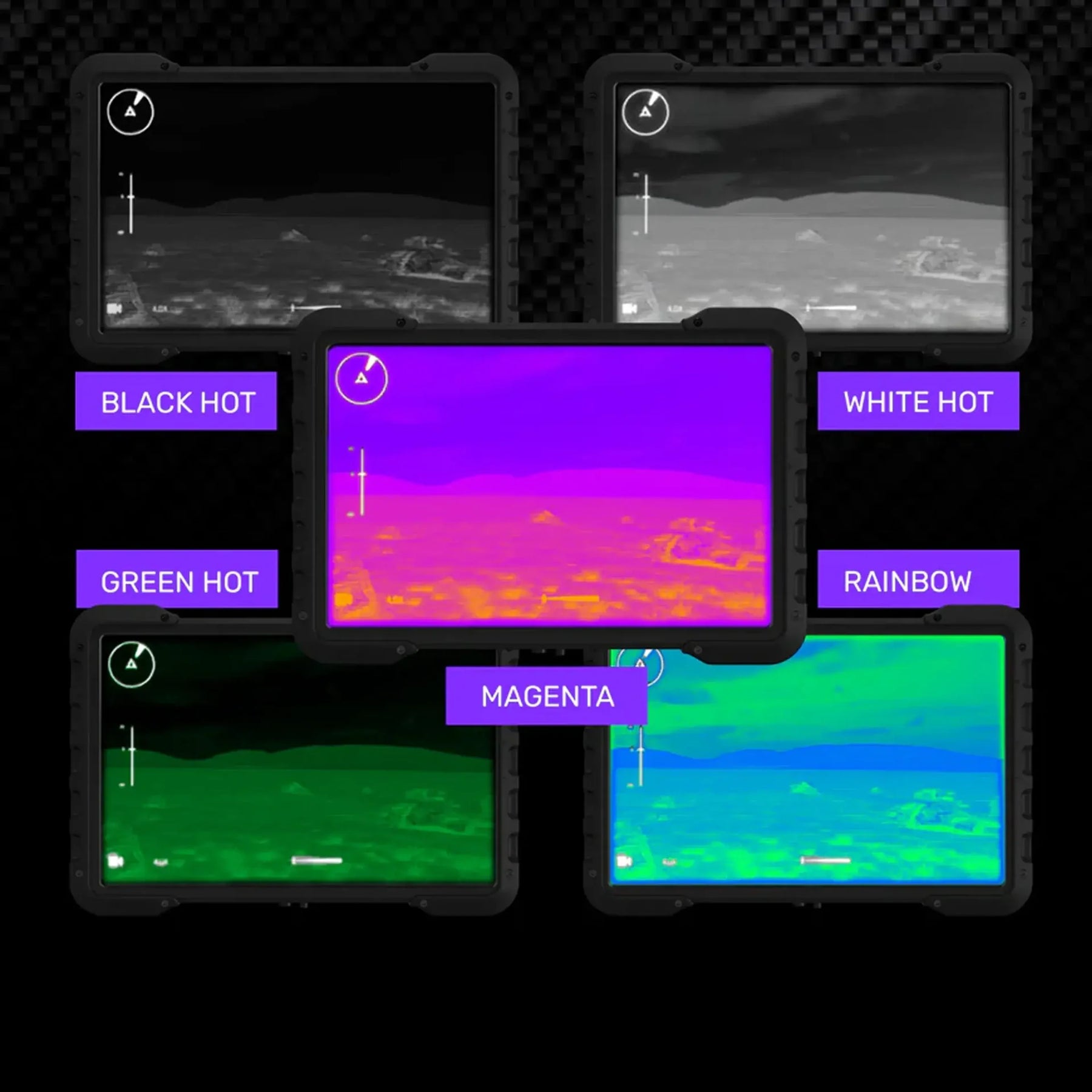 Termiske paletter White/Black Hot, Rainbow, Magenta, Green Hot White/Black Hot, Rainbow, Magenta, Green Hot