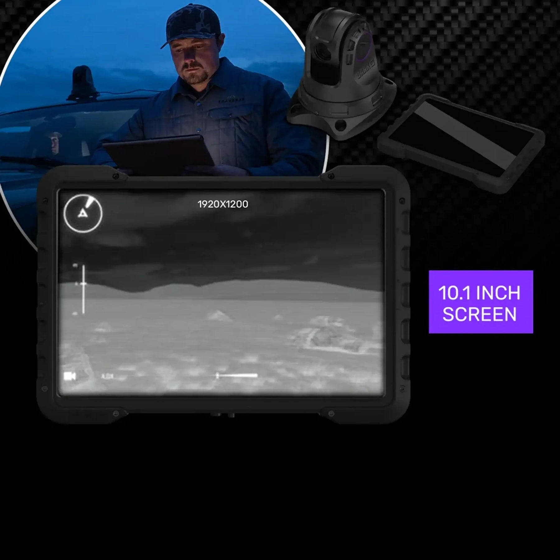 Dark30 PTZ er et avansert termisk system utviklet for profesjonell jakt, ettersøk, brann, redning og beredskap. Kameraet kan monteres på kjøretøy og gir kontinuerlig 360° panorering og tilt fra rett ned til 45° over horisonten. Med direkte HDMI-tilkobling til en 10,1″ skjerm og app-styring (iOS/Android) leveres klare termiske bilder i sanntid – uten komprimering – noe som er avgjørende når hvert sekund teller i krevende miljøer som mørke, tåke eller røyk.