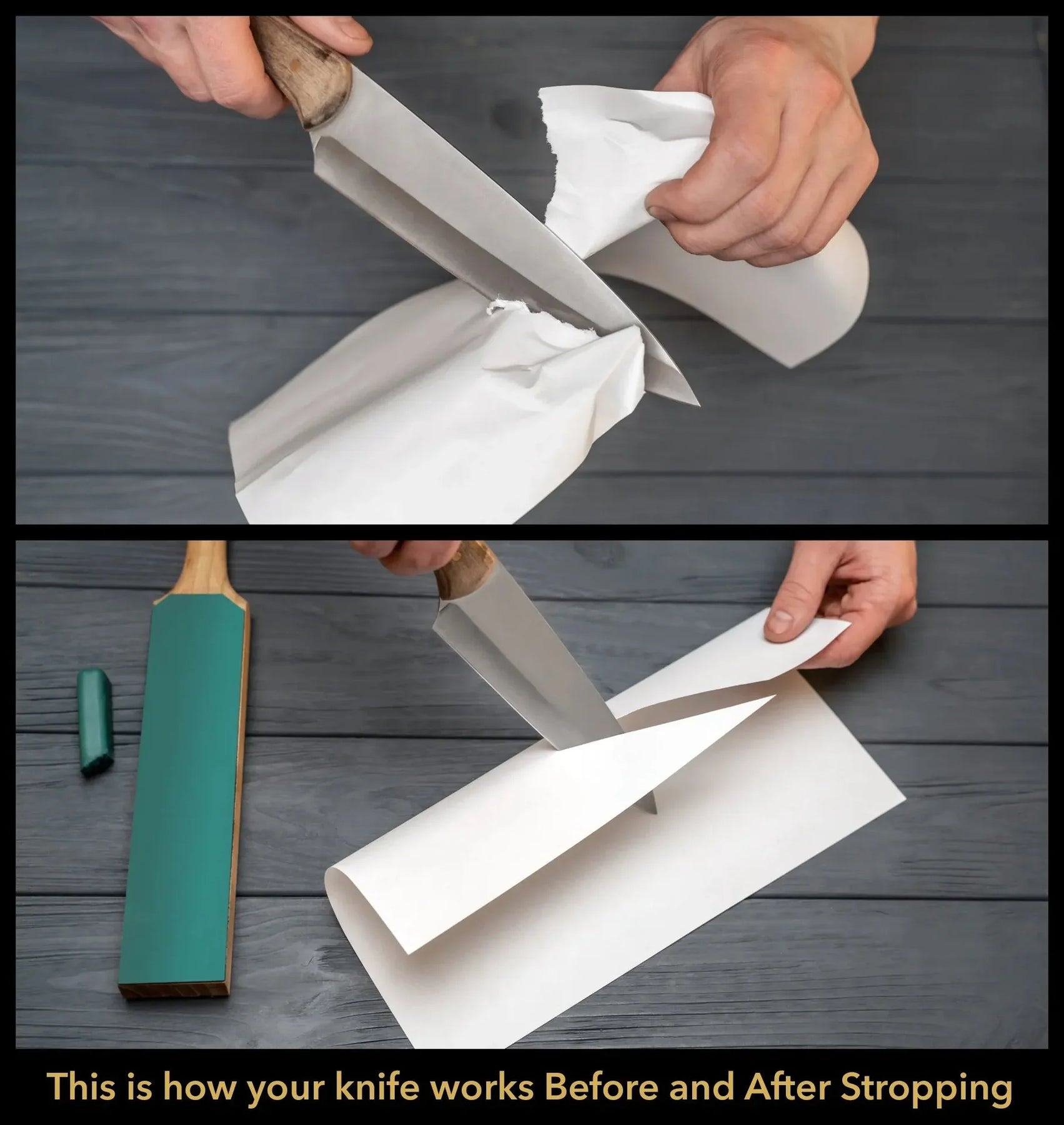 Forbedre resultatet med medfølgende grønn poleringspasta som hjelper deg å nå maksimal skarphet. Et ideelt verktøy for alle som ønsker et profesjonelt resultat hjemme.