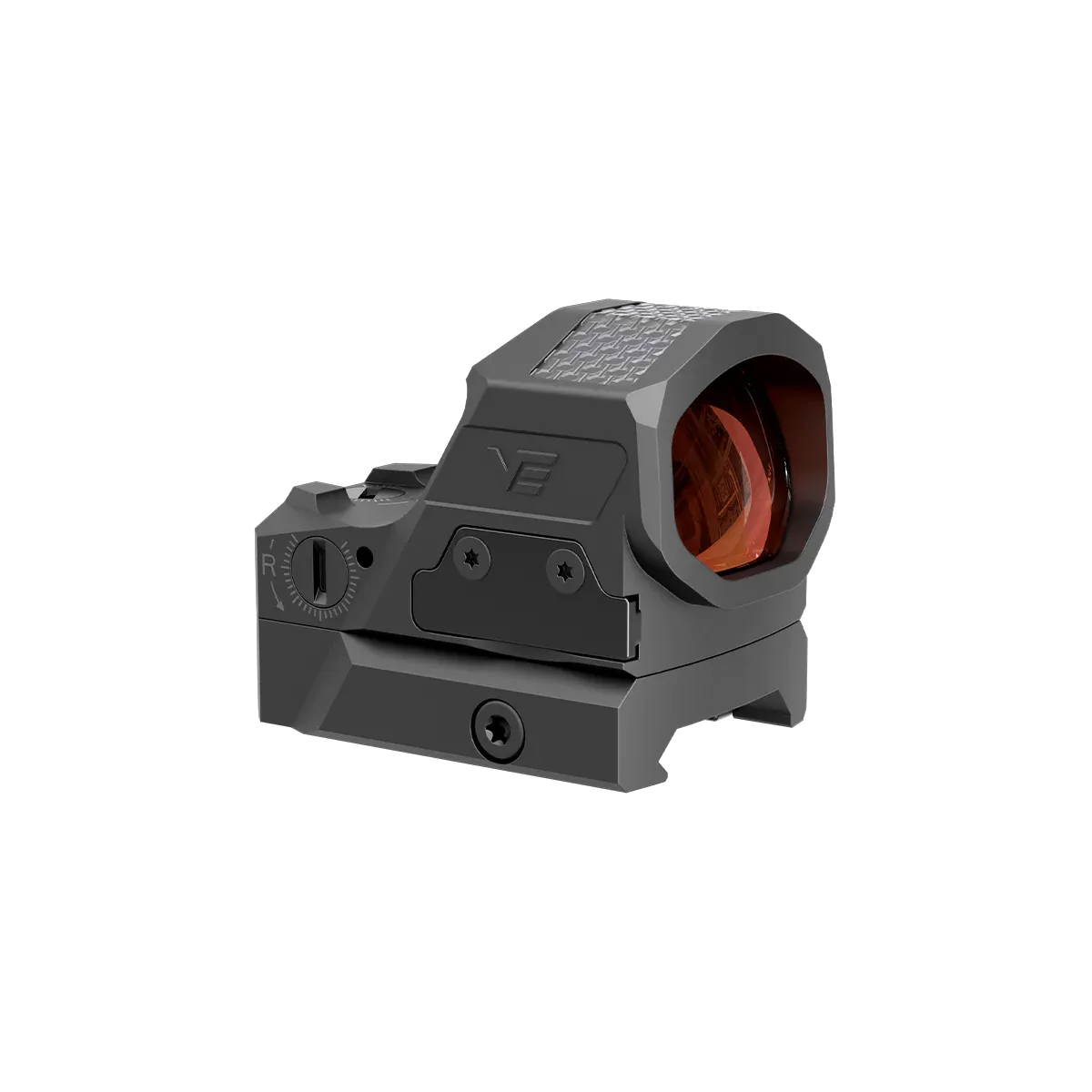 Full-metalls rødpunktsikte laget av sterkt 7075-T6 aluminium med forskjellige retikkeltyper. Siktet er kompakt og passer ypperlig på pistoler med MOJ-footprint. Siktet kommer med 21mm adapter og passer godt til rifler, pistoler og hagler.