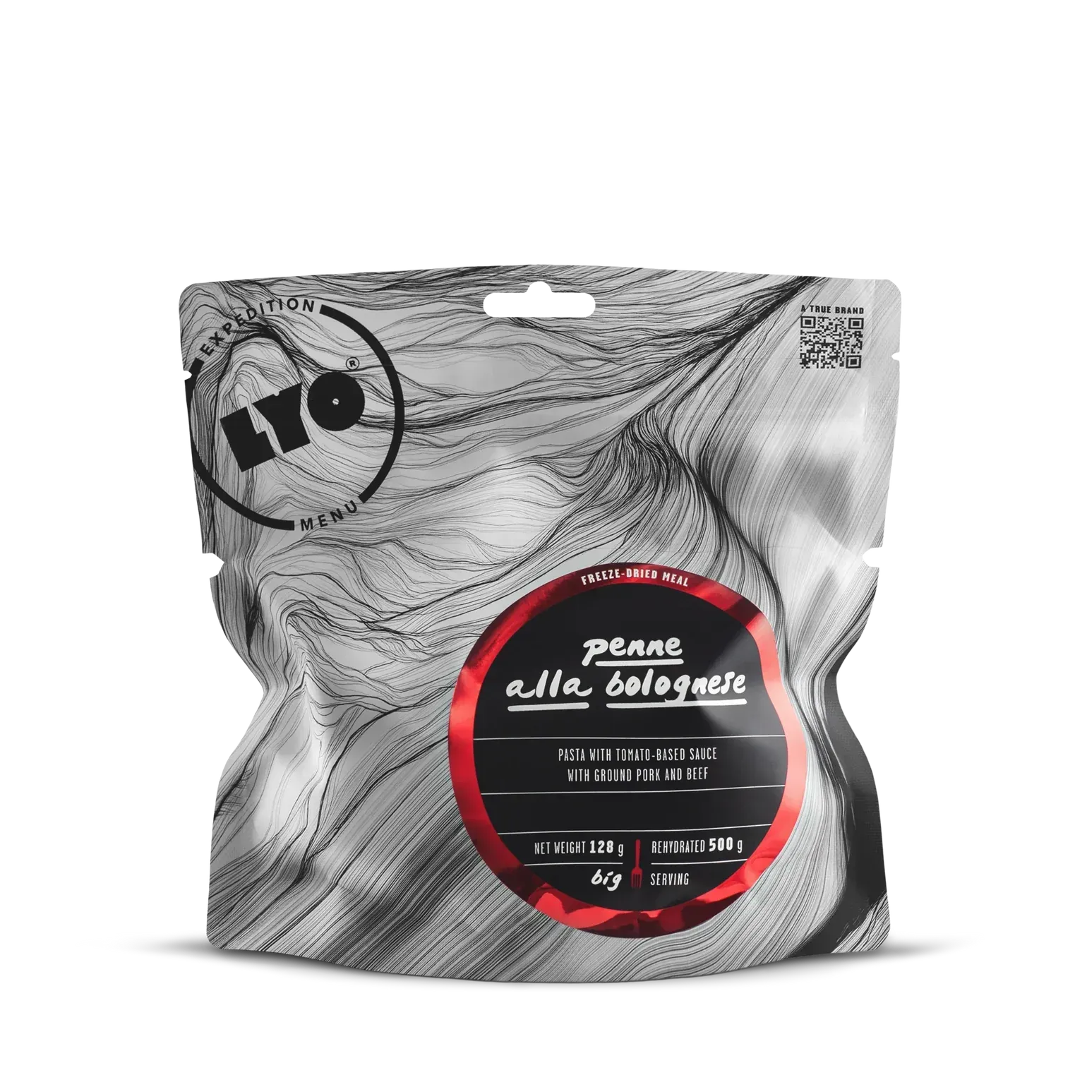 LYOFOOD Penne alla Bolognese er en autentisk italiensk-inspirert pastarett med penne og fyldig bolognesesaus. Laget med storfekjøtt, tomater, gulrot og urter, og helt fri for kunstige tilsetningsstoffer. Denne retten gir deg ekte matopplevelse på tur, med lav vekt og høy smakskvalitet. Perfekt for fjell, ekspedisjoner eller basecamp – hvor du vil ha varm og ekte middag raskt og enkelt.