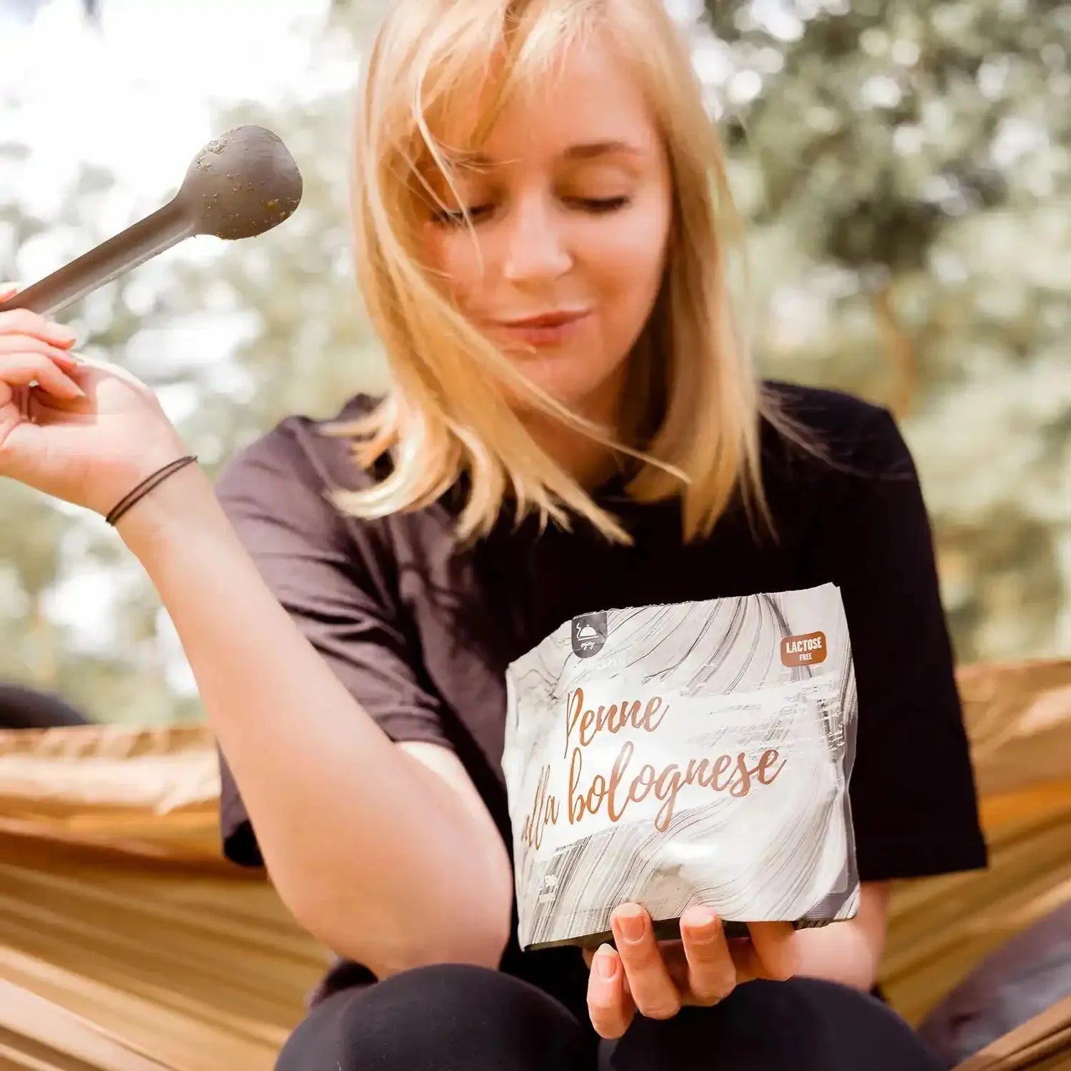 Få smaken av Italia, uansett hvor eventyret fører deg! LYOFOOD Penne Bolognese kombinerer pasta med en ekte kjøttsaus laget av storfekjøtt, tomater og italienske urter. 100 % naturlige ingredienser uten konserveringsmidler, frysetørket for lav vekt og lang holdbarhet. Perfekt for lange turer, ekspedisjoner eller camping der du ønsker ekte mat på en enkel måte.