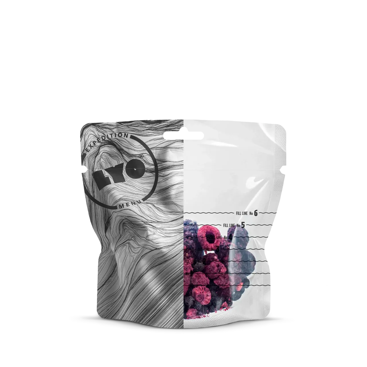 En fruktig miks av bringebær, blåbær og bjørnebær – perfekt som snacks eller til frokostblanding, smoothie og dessert. LYOFOOD Wild Berry Mix er laget uten tilsatt sukker og konserveringsmidler, kun 100 % naturlige bær. Sprø og smakfull rett fra posen, eller gjenopprettet med vann eller melk.