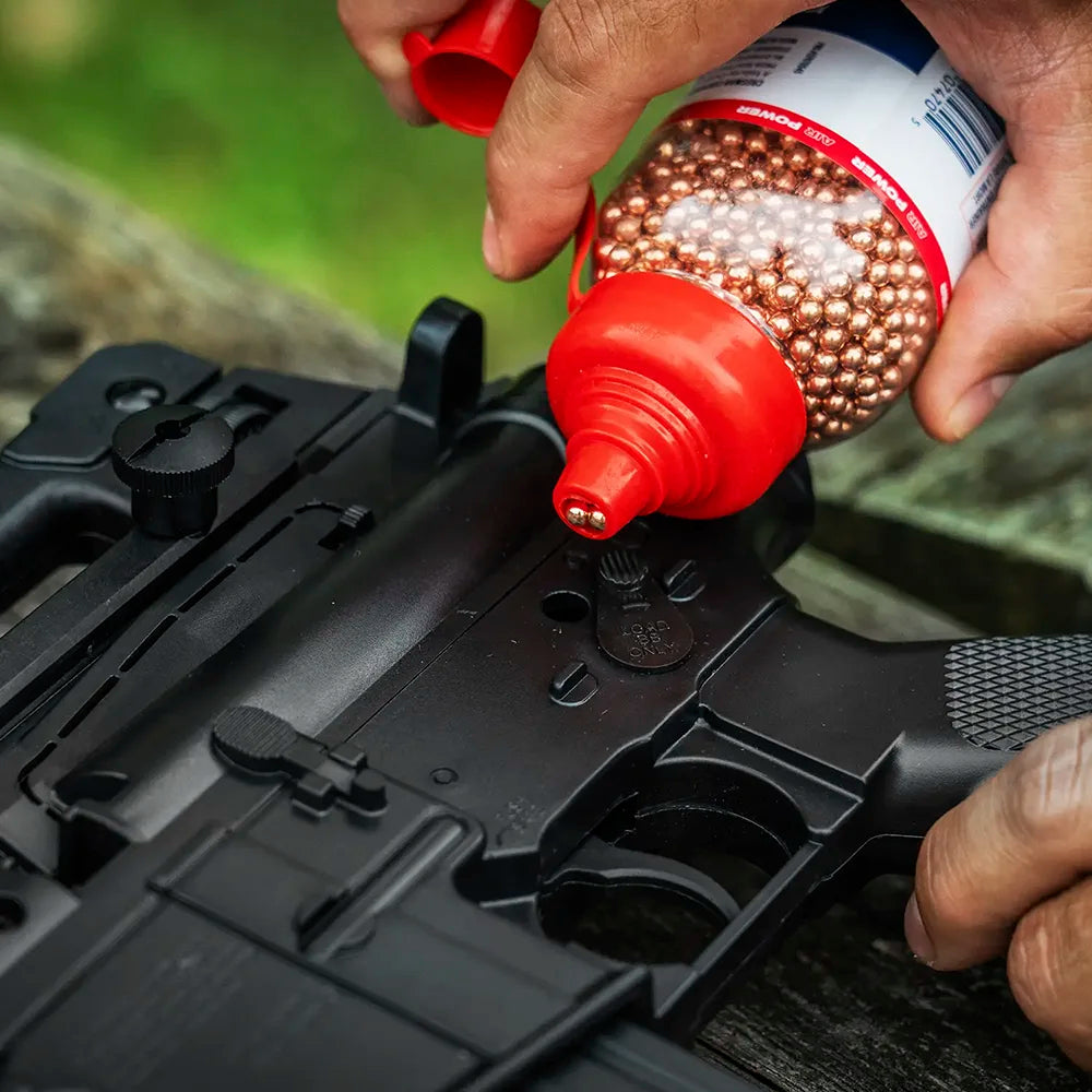 Le fusil est doté d'une pompe intégrée que vous gonflez manuellement en tirant plusieurs fois sur le bras de chargement, vous n'avez donc pas besoin de propulseur/recharge, ce qui rend ce fusil très bon marché et facile à utiliser !