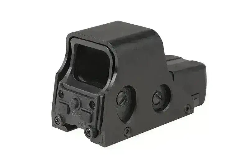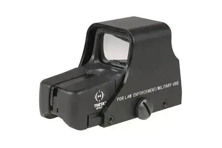 Ce viseur point rouge de Theta Optics est un viseur holographique à point rouge souvent vu sur les fusils M15/M16. Vous pouvez choisir entre un réticule rouge ou vert et est idéal pour une utilisation de jour comme au crépuscule grâce à une luminosité réglable. Le point de visée du viseur peut être facilement ajusté verticalement et horizontalement et se fixe facilement à la grande majorité des rails de 21 mm. Le viseur est fabriqué avec un mélange de polymère et de métal, ce qui le rend très durable. La lunette est alimentée par 4 piles LR44 qui s'installent facilement dans la lunette.