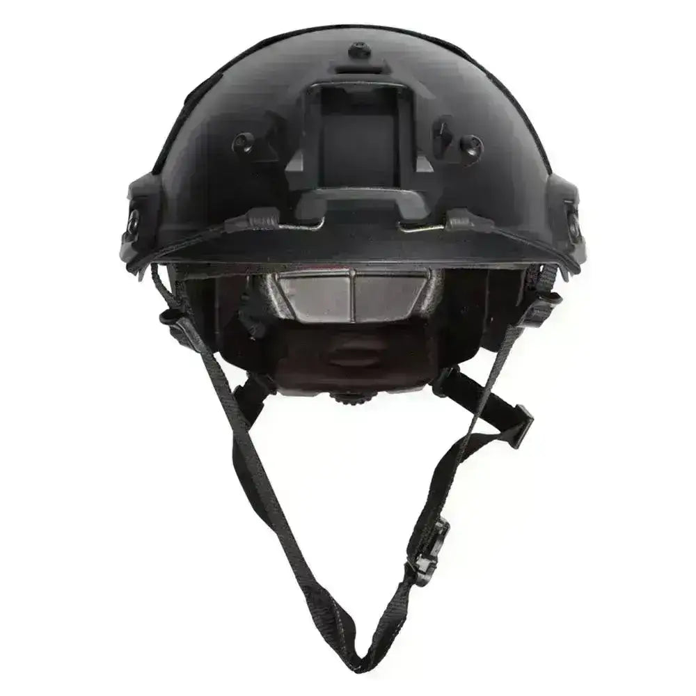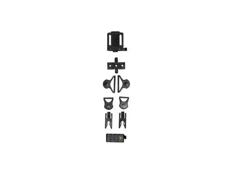 Il existe une multitude de possibilités pour fixer des accessoires sur le casque. Avec des rails des deux côtés, vous pouvez y monter une lanterne, un laser, un appareil photo ou des lunettes. Il est livré avec différents supports pour fixer différents équipements. À l'avant du casque se trouve également une fixation pour les NVG, des lunettes de vision nocturne. Celui-ci est stabilisé par deux élastiques, pour rendre la marche plus confortable.