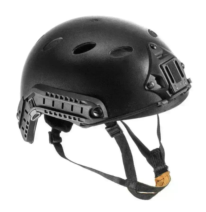 Réplique simple du célèbre casque PJ FAST. Le casque est parfait pour les jeux d'airsoft et possède une mentonnière réglable, un ensemble NVG et des rails sur les côtés.