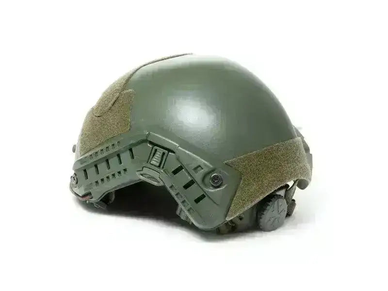Il existe une multitude de possibilités pour fixer des accessoires sur le casque. Avec des rails des deux côtés, vous pouvez y monter une lanterne, un laser, un appareil photo ou des lunettes. Il est livré avec différents supports pour fixer différents équipements. À l'avant du casque se trouve également une fixation pour les NVG, des lunettes de vision nocturne. Celui-ci est stabilisé par deux élastiques, pour rendre la marche plus confortable.