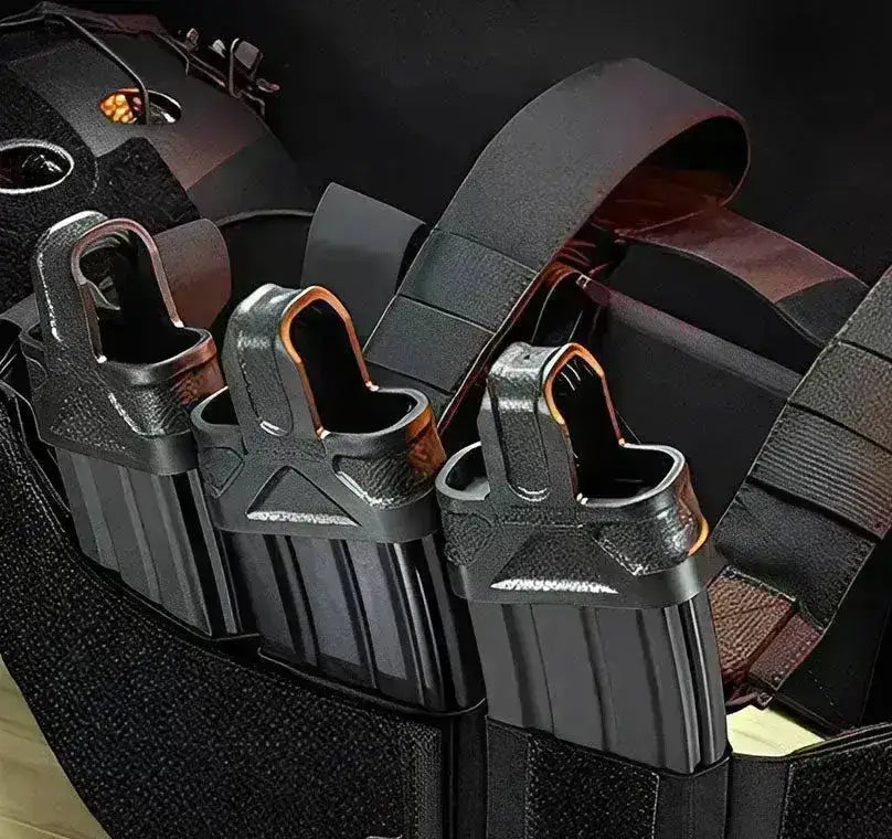 Ce "Speed ​​​​Chest Rig" s'adapte parfaitement au corps et est conçu pour maintenir un poids et un profil faibles. C'est parfait pour transporter des magazines M4/M15/M16. Comme les poches sont élastiques, vous pouvez également y insérer d'autres types de magazines, comme les magazines Aug, AK et G36.