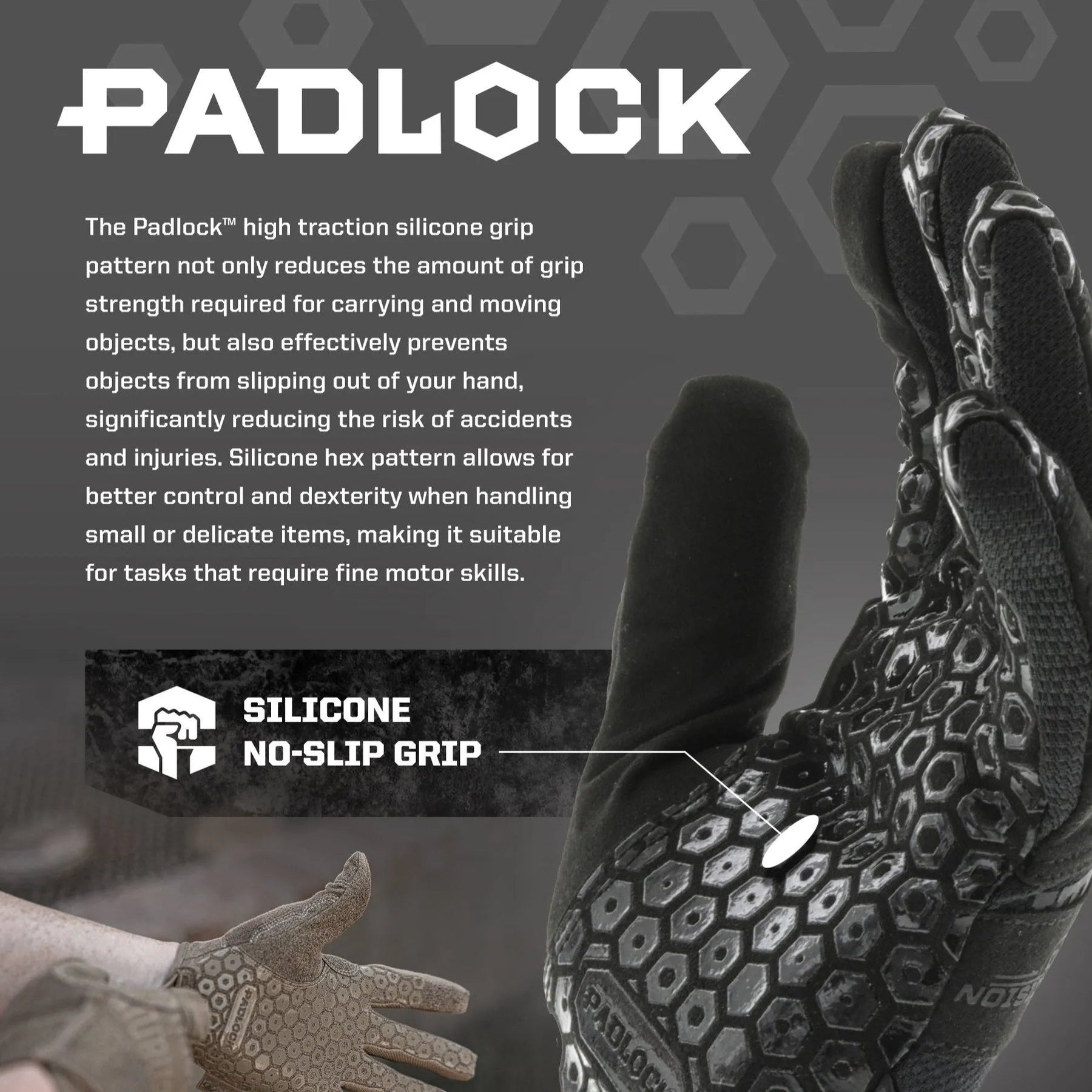 - Padlock™ silikonmønster i håndflaten – Sikrer godt grep under bruk.