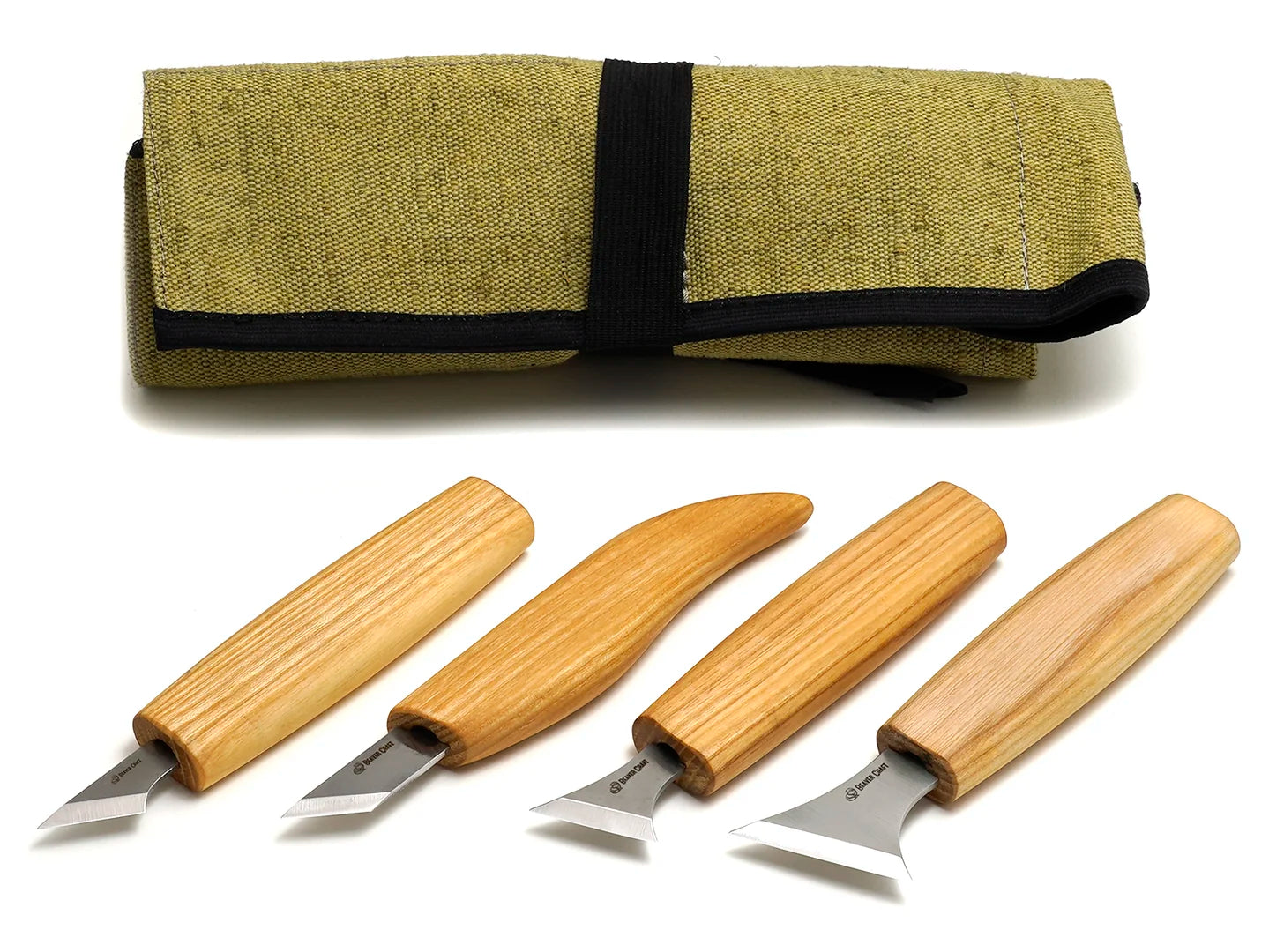 Outils de sculpture sur bois faits à la main en Ukraine. L'ensemble S05 est parfait pour ceux qui veulent le bon équipement pour façonner et sculpter de beaux motifs dans leur projet en bois. Avec ces couteaux à copeaux, vous pouvez façonner des formes géométriques et abstraites dans le bois facilement et efficacement avec d'excellents résultats !