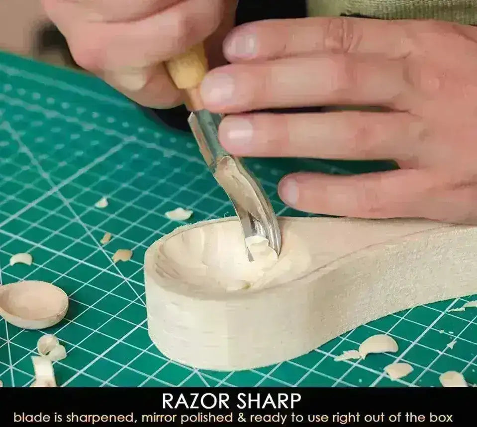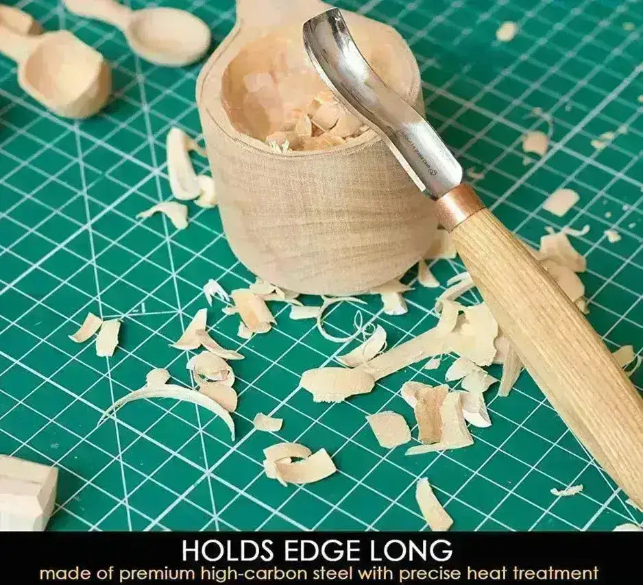 Ciseau courbé pour la sculpture sur bois, parfait pour creuser le bois. Un « ciseau courbé » est un excellent outil pour créer des formes rondes dans le bois avec de bons résultats. Indispensable pour clouer tasses, bols et louches.