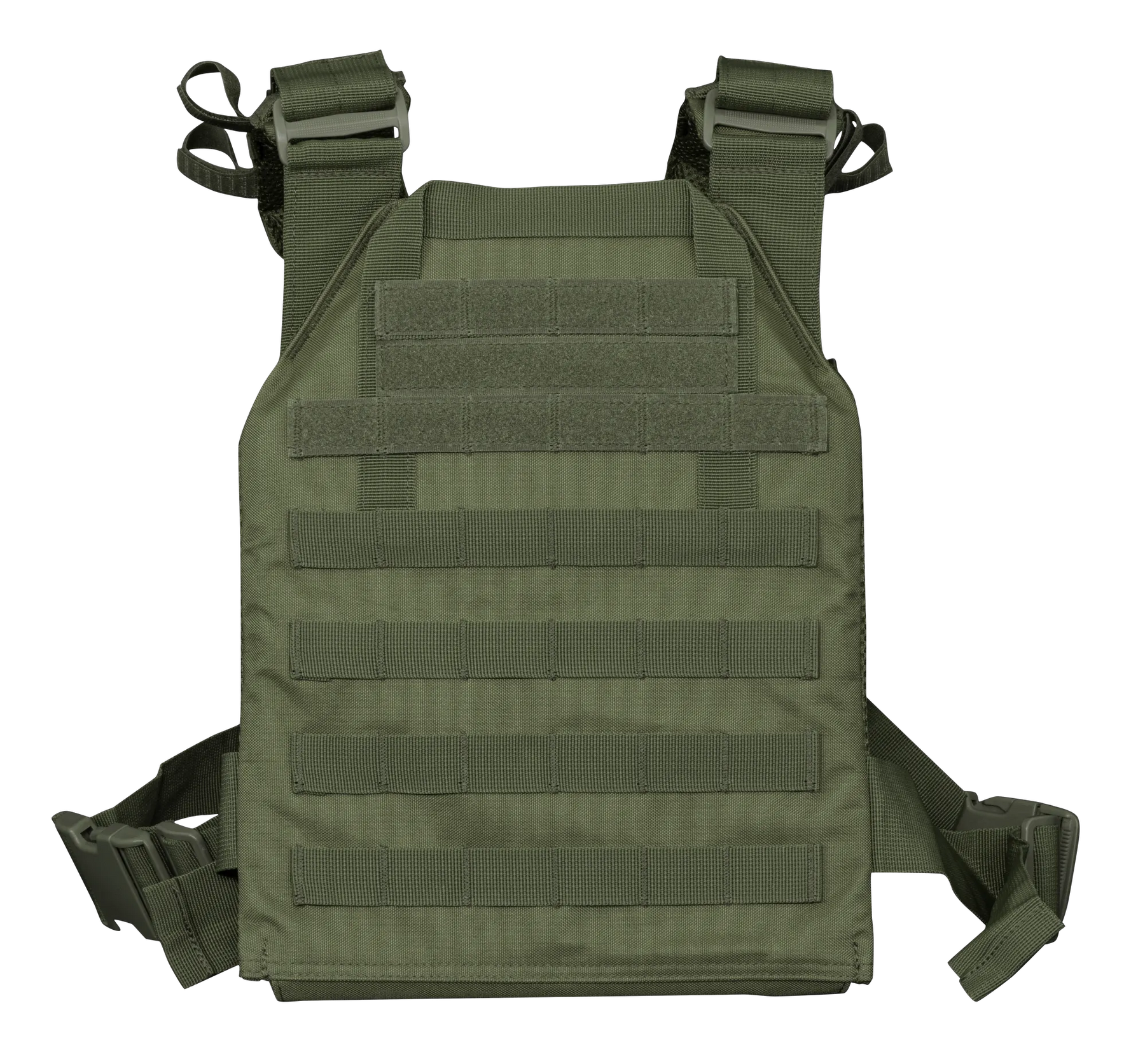 Vesten leveres uten lommer og plater, men er kompatibel med standard MOLLE-tilbehør. For optimal ytelse og levetid, anbefales det å rengjøre vesten med en fuktig klut og la den lufttørke.