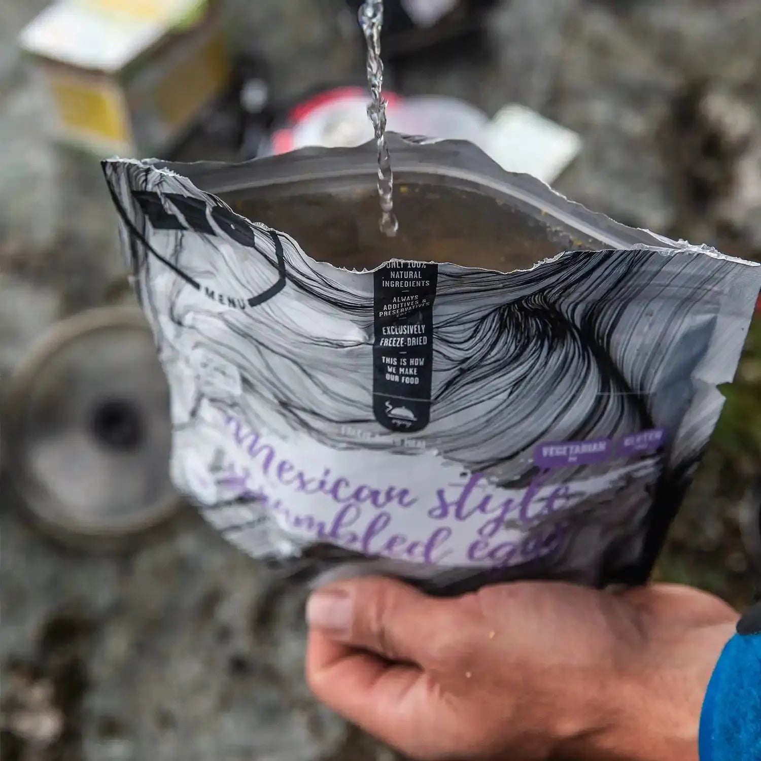 LYOFOOD Mexican Scrambled Eggs er en varm og mettende frokost med krydrede grønnsaker, eggeblanding og ost. Inspirert av meksikanske smaker og laget med 100 % naturlige ingredienser. Retten er fri for konserveringsmidler og kunstige tilsetningsstoffer, og passer perfekt for fjellturer, ekspedisjoner og camping – når du trenger en god og rask start på dagen.