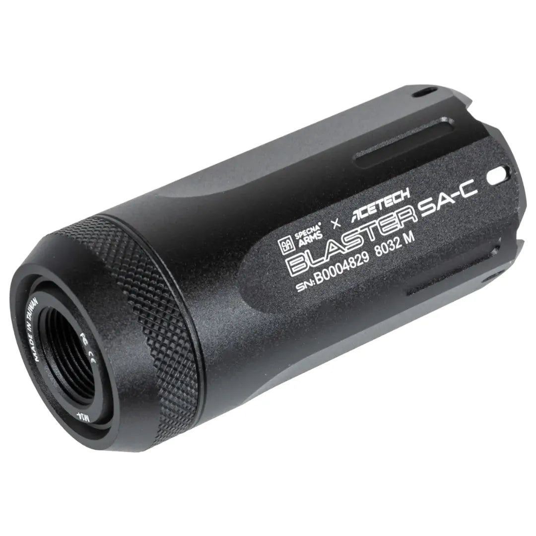 Le suppresseur de traceur Blaster SA-C est le résultat d'une collaboration entre Specna Arms et AceTech, un fabricant expérimenté connu pour ses accessoires de haute qualité pour les armes airsoft.