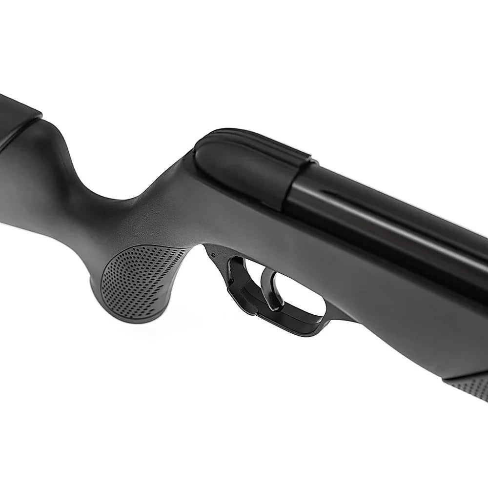 Det riflede løpet på 485mm er optimalisert for diaboler og gir stabil kulegang. Riflen leveres med fiberoptiske åpne sikter som gir god synlighet mot målet under ulike lysforhold.