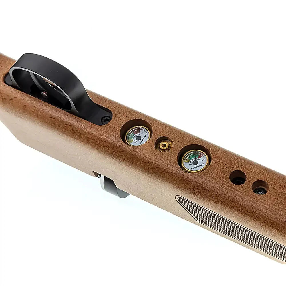 Et klassisk PCP luftgevær med moderne teknologi. Snowpeak M30B kombinerer tradisjonell trestokk med et regulert PCP-system for stabil ytelse og god presisjon. Den integrerte lufttanken rundt løpet gir riflen et karakteristisk design og en kompakt konstruksjon.