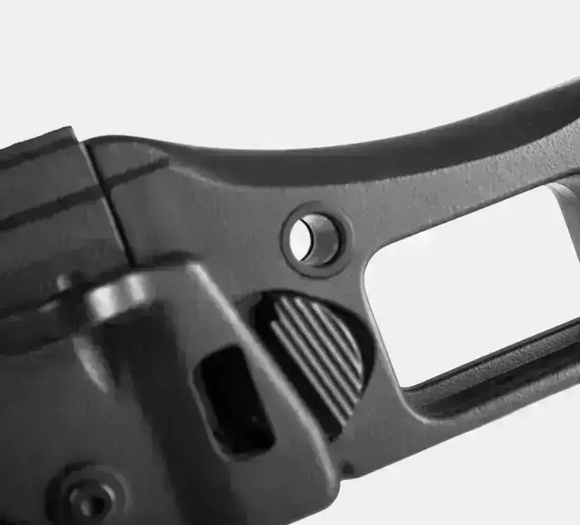 L'intérieur impressionne (entre autres choses) avec une unité hop-up rotative qui peut être facilement ajustée. Cela vous donnera précision presque « trou dans trou », même à des distances légèrement plus longues. Ceci est dû au bucking plat personnalisé Maple Leaf et à la chambre hop-up CNC/TDC, et le canon intérieur de précision contribue également bien à une précision exemplaire. Un mélange unique de pièces à grande vitesse confère au fusil un fonctionnement continu et sûr qui peut résister aux rigueurs des jeux d'airsoft.